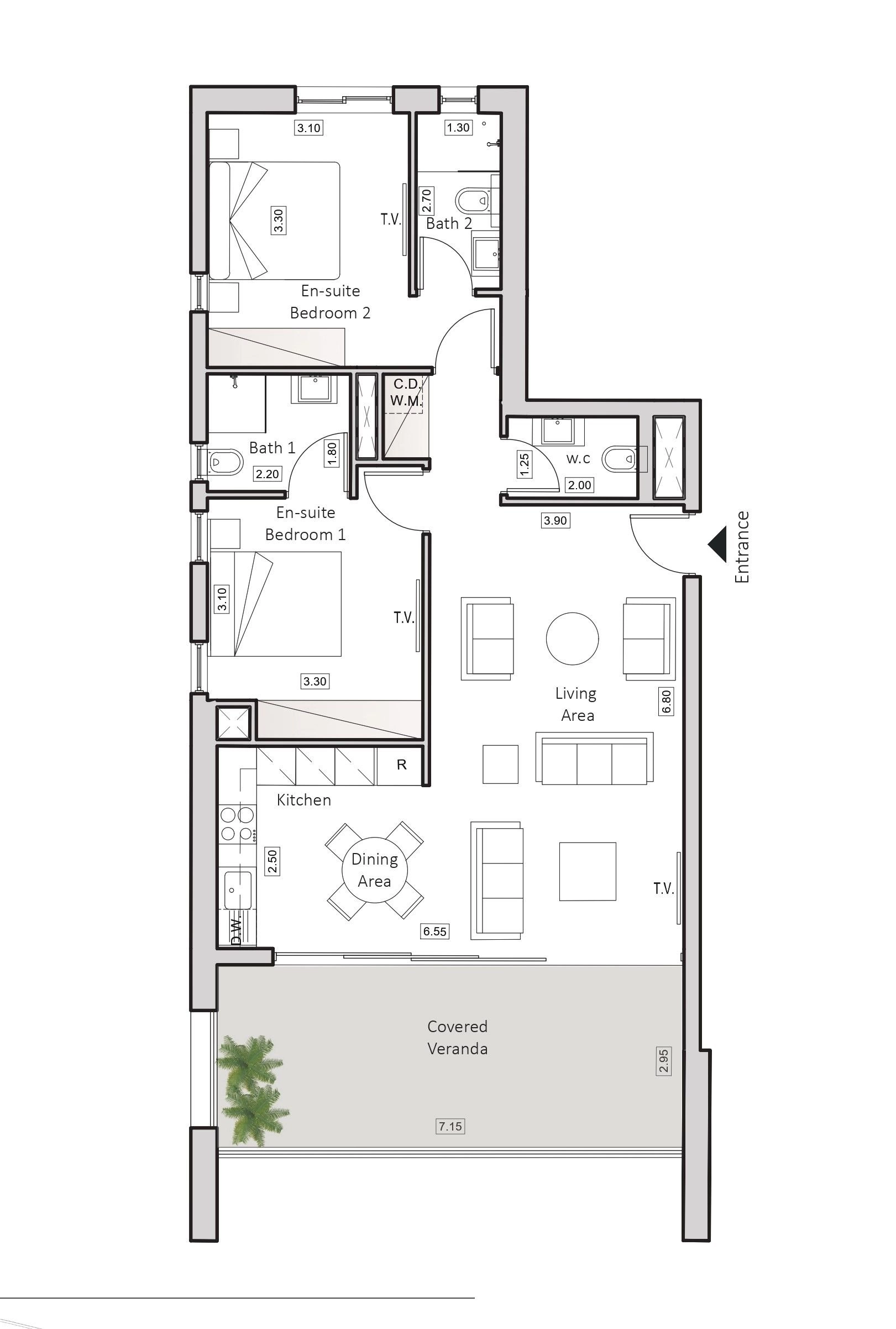 • Internal Area: 90 m²