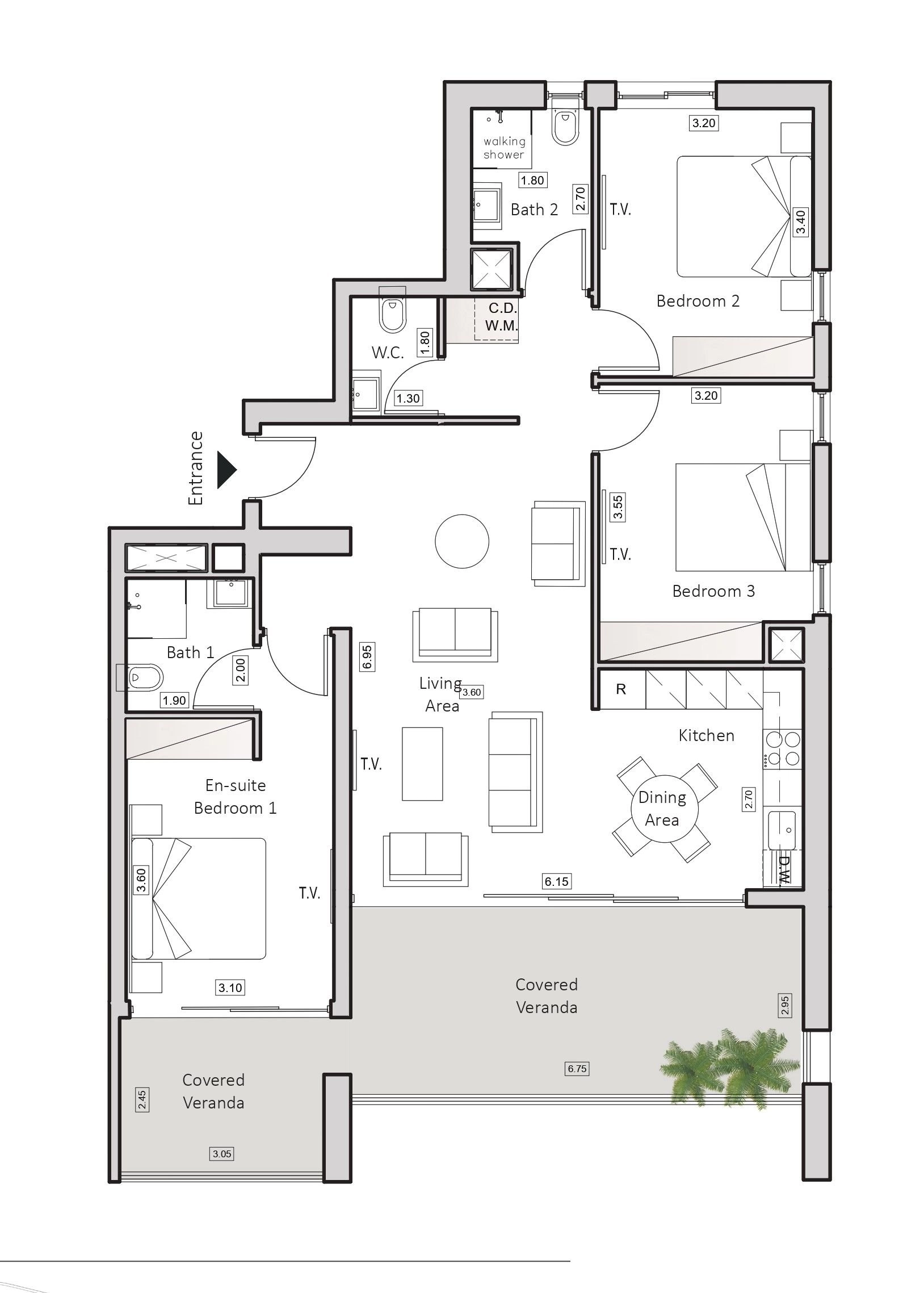 • Covered Veranda: 30 m²