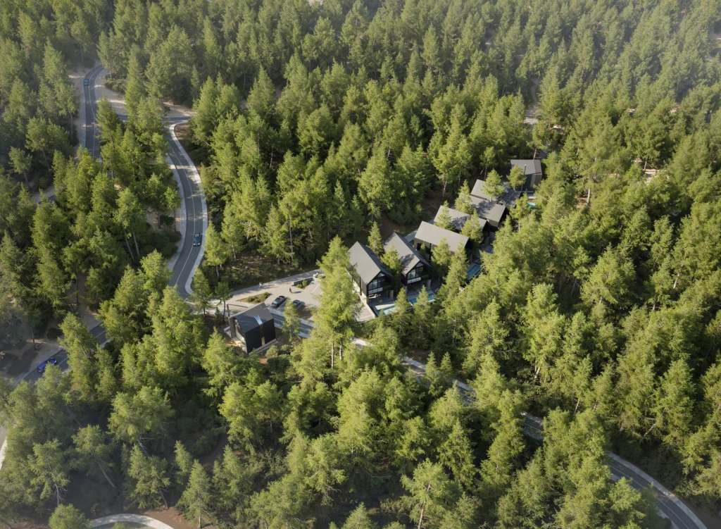 The villa is located in the peaceful mountain village of Moniatis, surrounded by forest landscapes and fresh mountain air while still being close to city amenities.