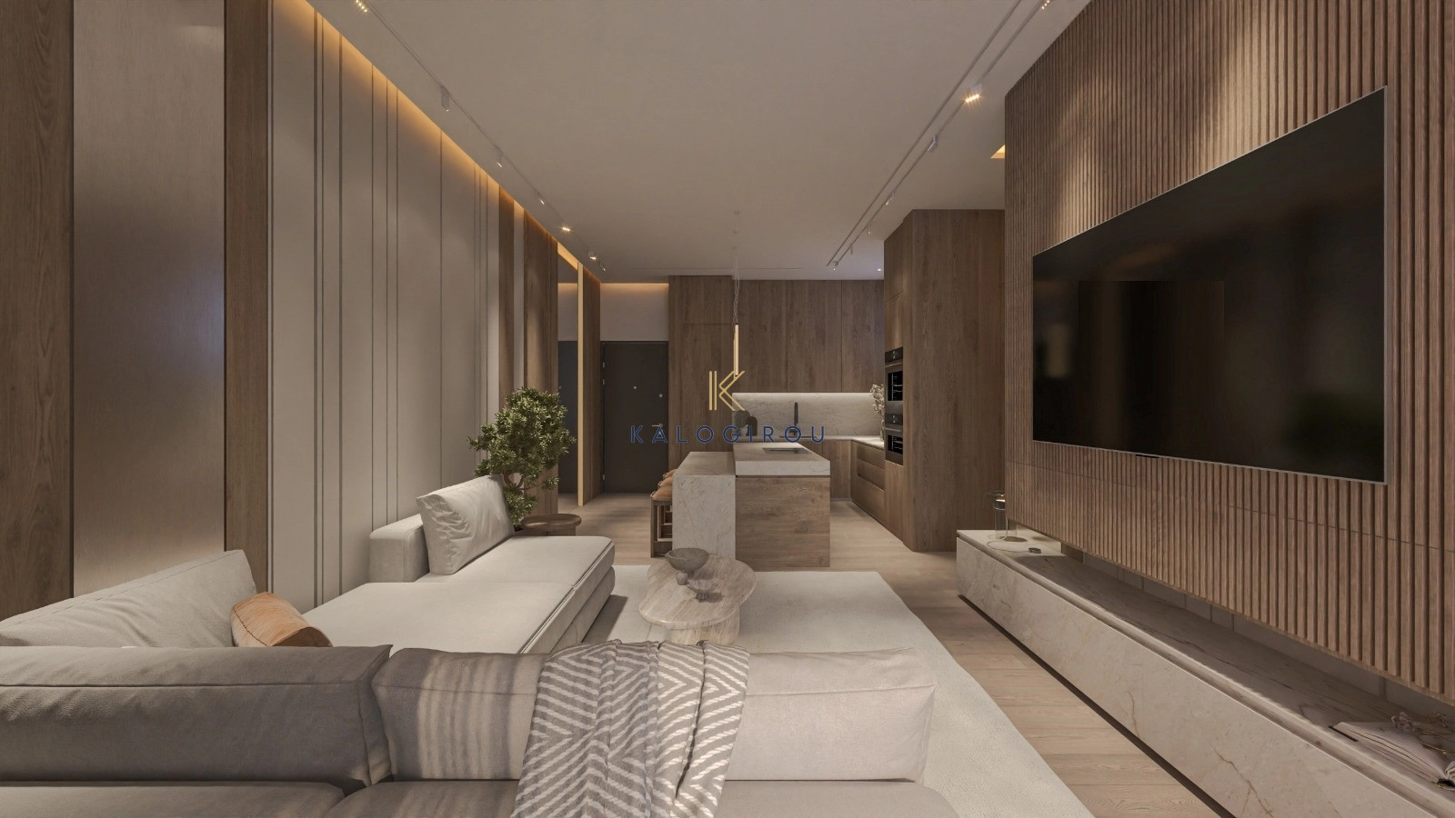 Apartment for sale in Larnaca Aradippou area. It consists of an open plan kitchen-living-dining area, one bedroom, shower room, and covered veranda. Furthermore, the apartment has assigned covered parking and storage on the ground level.