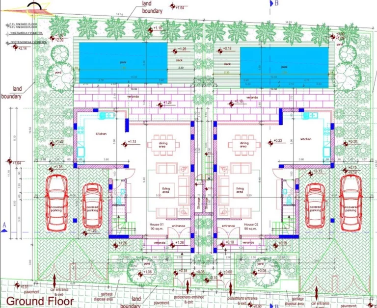 Three Bedroom Link-Detached Villa For Sale In Pyla, Larnaca – Title Deeds (New Build Process) A new development consisting of just 19 Three and four bedroom individual villas in the well sought area of Pyla. The area of Pyla offers a quieter environment compared to the city that is at the same time easily accessible and only a 10 minutes drive away. Close to schools and the University of Central Lancashire, Cyprus – UCLAN Villa 5 or 8 - 3 Bedrooms with ensuite facilities and fitted wardrobes - Open plan living, dining & kitchen area - Guest WC - Air conditioning units - Unfurnished - Covered parking - Private swimming pool - Roof terrace - Garden - Internal 210 m2 - Covered ground floor veranda 20 m2 - Roof garden 60 m2 - Covered parking 20 m2 - Plot 324 m2 - Close to all local amenities - 4 Minutes to the sea & beach - 12 Minutes to Larnaca Town Centre - 19 Minutes to Larnaca International Airport - Suitable for Cyprus Permanent Residency – Fast Track - Subject to VAT - Energy Efficiency A+ Pyla Pyla is a unique village in that it has a mixed community of Greek Cypriots and Turkish Cypriots, supervised by the United Nations. It is often held up as an example of how Greeks and Turks can live together in harmony. Pyla has a host of local and international gastro restaurants. Local Activities include:- Boat-Fishing trips and water sports. Excellent night life by the harbour and tourist area – Wine tasting tours – Go-karting and waterparks – Reptile and Bird Park – Water Skiing & Beautiful blue flag beaches. Also the University of Central Lancashire, Cyprus (UCLan, Cyprus) is located in Pyla. UCLan Cyprus is the only university in the country that can offer students the advantage of an honours or postgraduate degree recognized both in the UK and in Cyprus. ———— * Title Deeds (New Build Process) * Private Swimming Pool * Roof Terrace * Suitable for Cyprus Permanent Residency – Fast Track * Subject To VAT * Under Construction – Completion 12 Months from Signing * Energy Efficiency A+ Pyla Pyla County: Larnaca Sale Type: For Sale Ref #: ROX003N3/LD