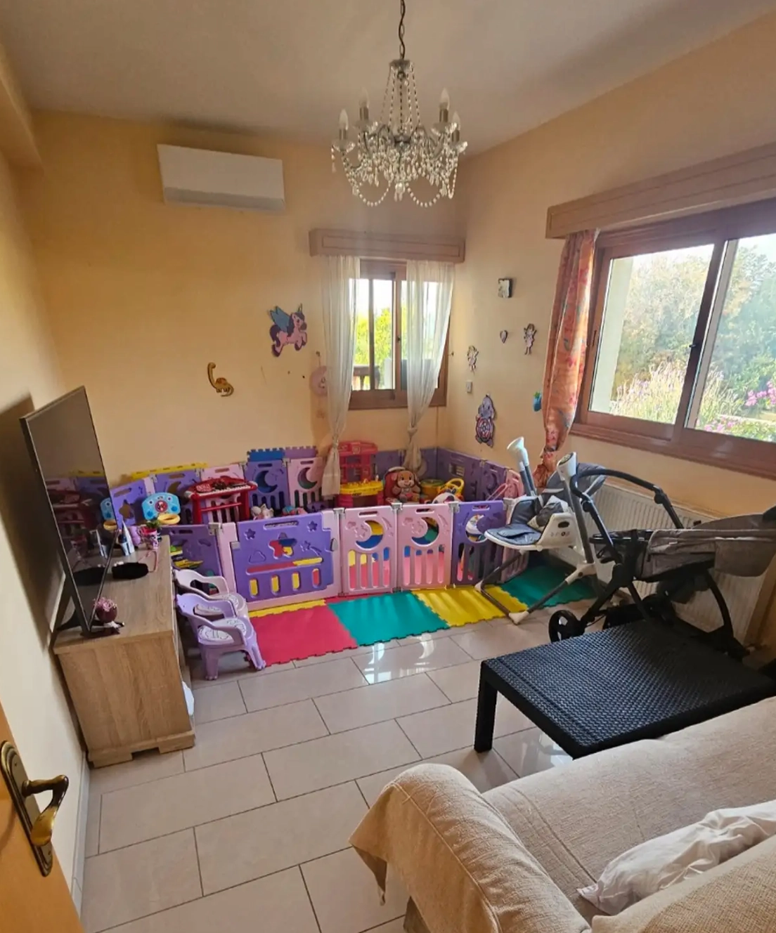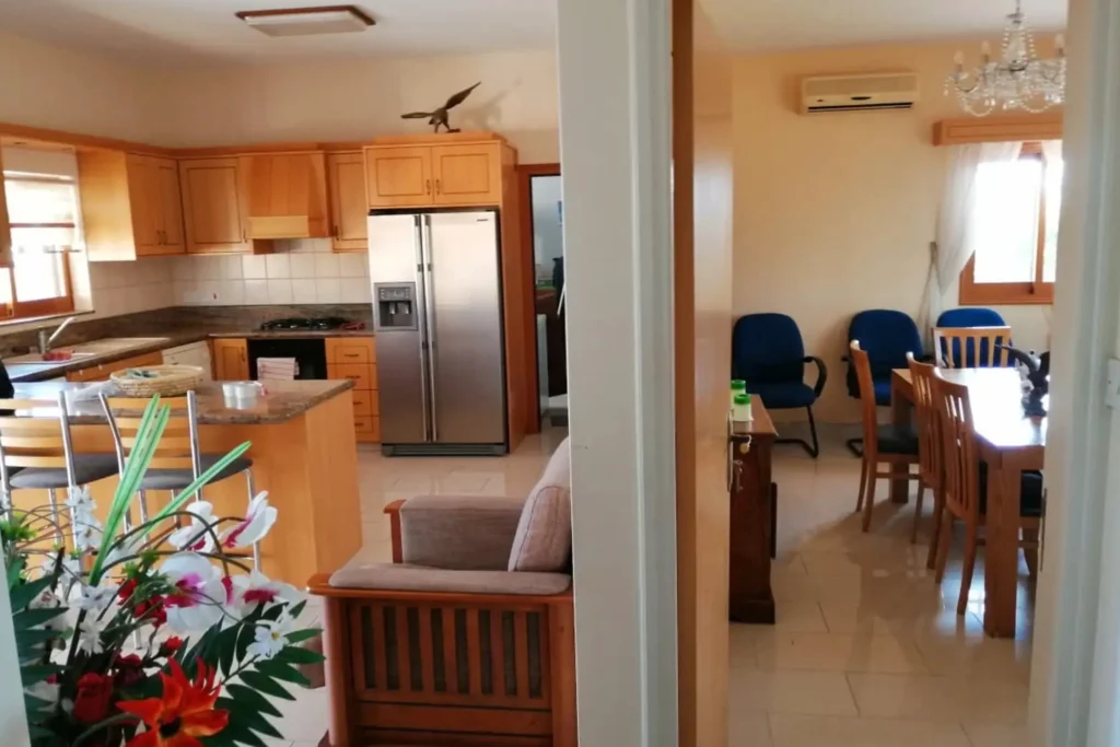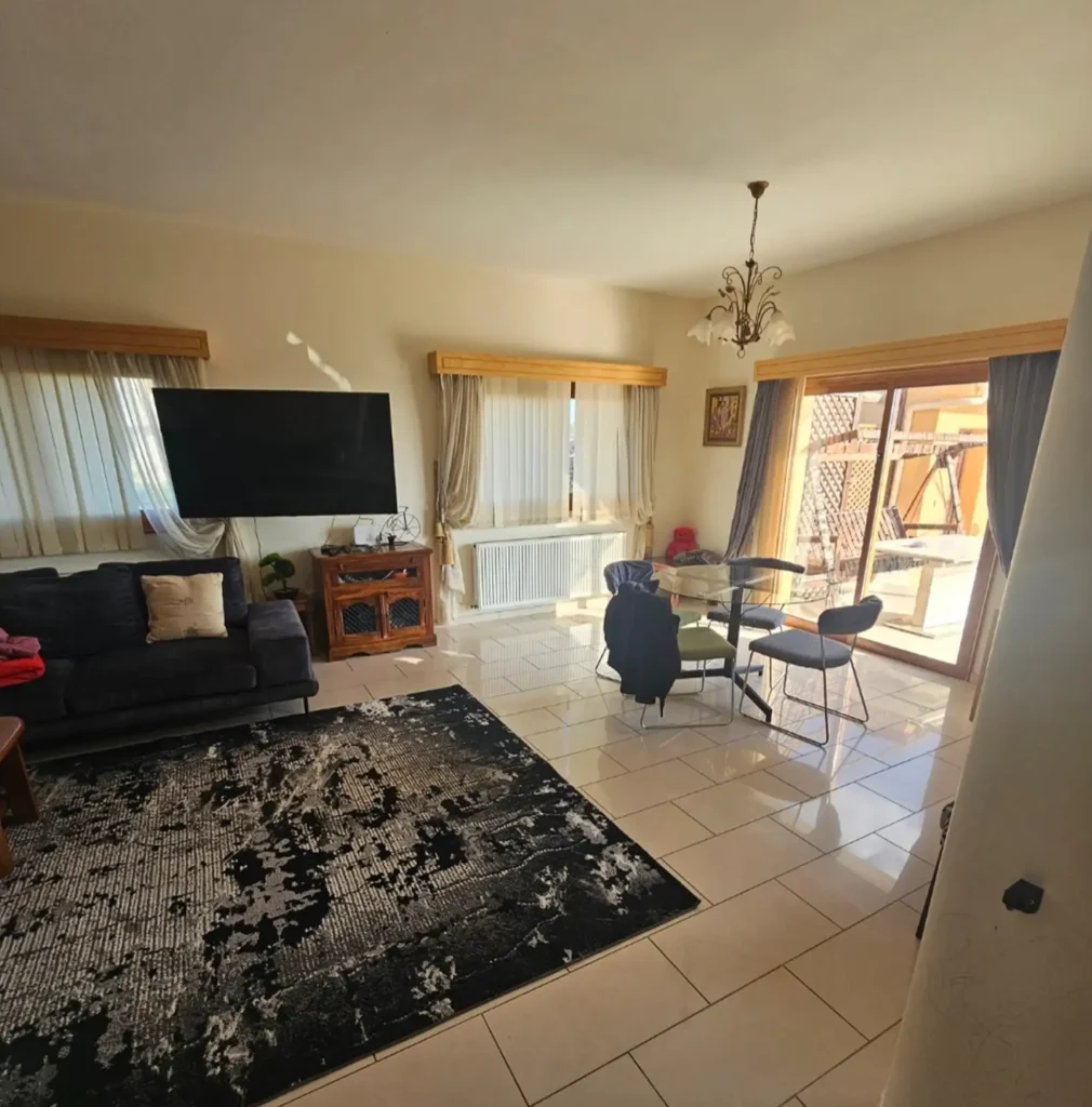 This fully furnished three-bedroom semi-detached house is located in Erimi and offers a spacious living environment on a large 900 m² plot. The property provides approximately 230 m² of covered area and is offered as a resale.