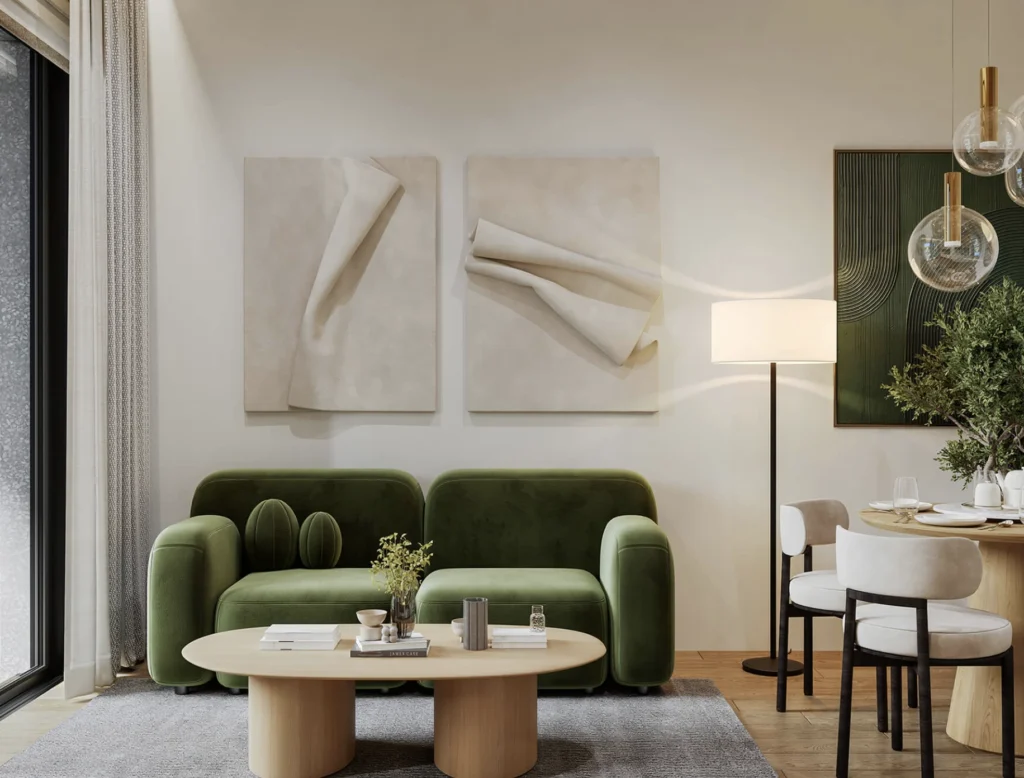 The two-bedroom apartment offers a spacious and comfortable living environment suitable for families or residents who require additional space. The open-plan living and dining area creates a bright central space that connects seamlessly with the kitchen.