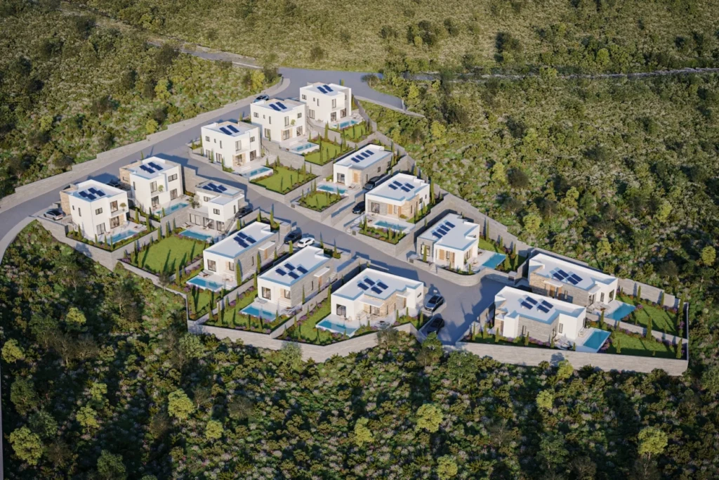 This luxurious three-bedroom villa is nestled in the scenic hills of Peyia, offering breathtaking panoramic sea views and a perfect blend of privacy, elegance, and Mediterranean charm. Part of an exclusive development of just 14 villas, each residence is set on a generous private plot, designed to harmonize with the natural surroundings.