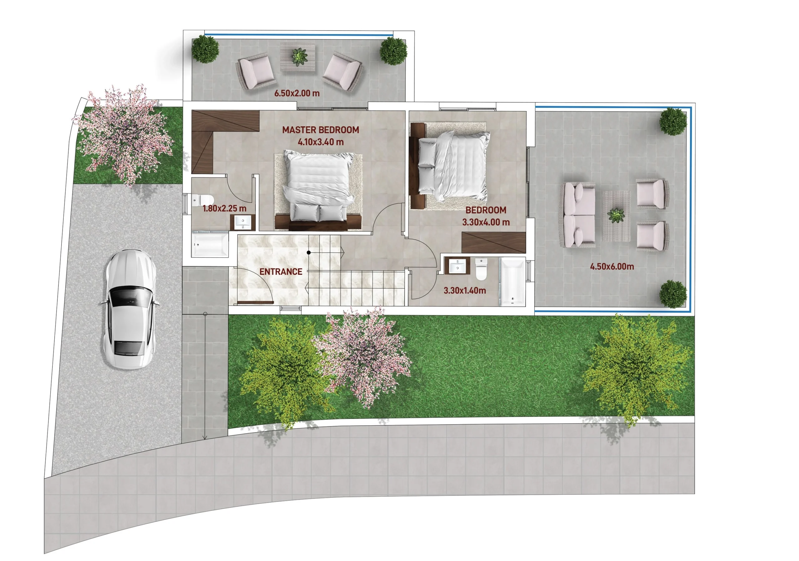 The outdoor areas are thoughtfully designed for relaxation and entertaining, allowing residents to fully enjoy the climate and scenic surroundings in complete privacy.