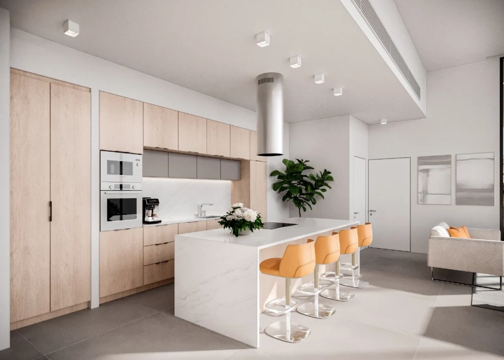 Penthouse for sale in Germasogeia, Limassol. The apartment is located in a modern residential complex just a few minutes from the sea — the prestigious Potamos Germasogeias area is just 200 meters from the coast and offers convenient access to infrastructure, shops, restaurants and the city promenade. The building is designed in a modern architectural style and is equipped with large panoramic windows, spacious verandas, covered parking and a storage room. High-quality finishing materials, Class A+ energy efficiency, and a photovoltaic system ensure comfort and low maintenance costs. This is an excellent offer for those who are looking for stylish, comfortable and high-quality accommodation near the sea and urban life.