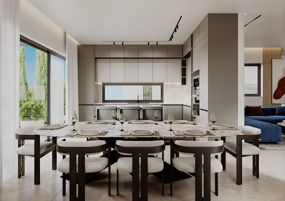 This contemporary 3-bedroom residence is located in the sought-after area of Agios Athanasios, offering a perfect balance of modern living, comfort, and convenience. Designed with a focus on functionality and aesthetics, the home combines clean architectural lines with high-quality finishes, creating an elegant and welcoming living environment. The property features a spacious and well-thought-out layout with three bedrooms, ideal for families or those seeking additional space for a home office or guest accommodation. Bright interiors, enhanced by large windows, allow for an abundance of natural light, while the seamless connection between indoor and outdoor areas creates a sense of openness and flow. The home includes a private swimming pool and carefully designed outdoor spaces, perfect for relaxation and entertaining. Built with attention to detail and in line with modern standards, the property incorporates premium exterior materials as presented in the architectural designs. For year-round comfort and energy efficiency, the residence is equipped with underfloor heating, climate control systems, and photovoltaic panels. These features ensure a sustainable and comfortable lifestyle in all seasons.