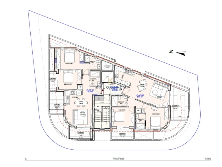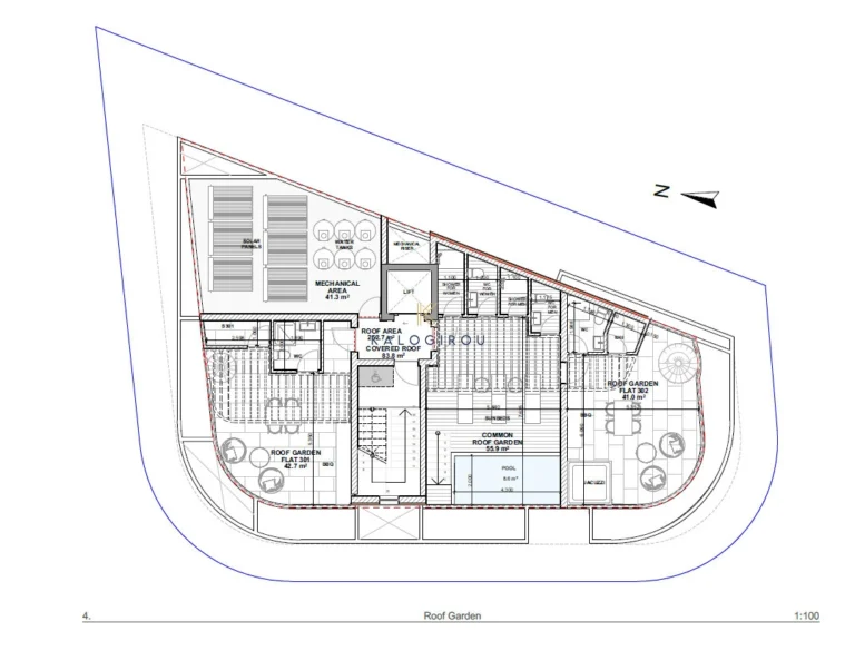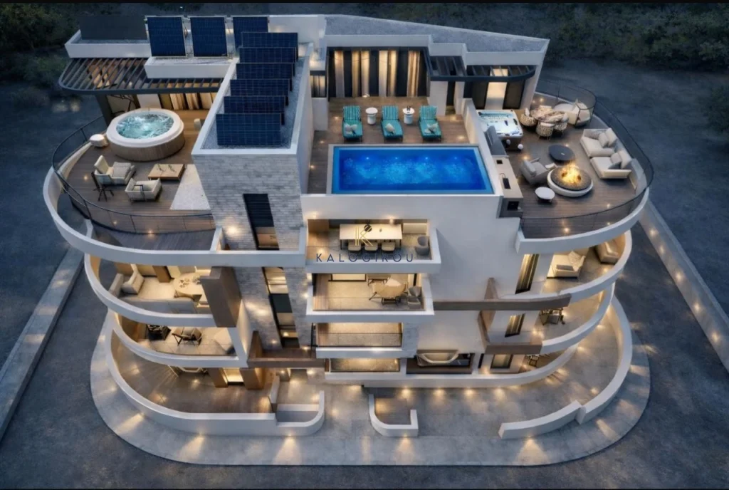 The development features a contemporary design with neutral tones and comprises a total of six apartments. There are two units on the first and second floors, and two units on the third floor. The third-floor apartments (top floor) benefit from private roof gardens. All apartments have access to an infinity communal swimming pool with toilet and shower facilities.