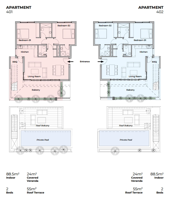 This luxurious two-bedroom penthouse is part of a boutique residential development that combines innovative architecture with sustainable design, offering an elevated lifestyle with privacy and style. The building features a sleek contemporary façade with integrated greenery, creating a harmonious blend of modern living and nature.