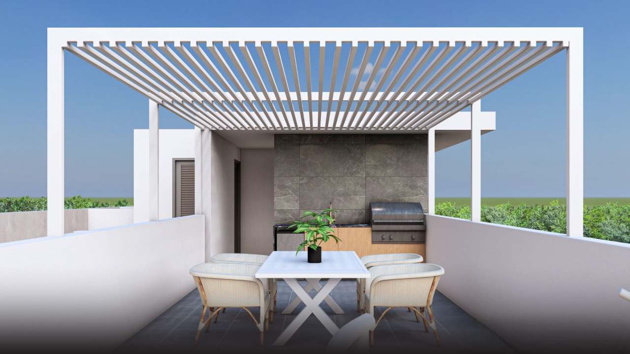 This modern two-bedroom penthouse is part of a boutique three-storey residential building in Polemidia, comprising just six apartments and offering an elevated sense of privacy and comfort in a well-connected area of Limassol.