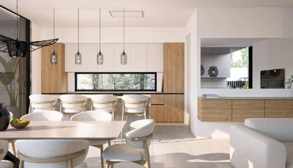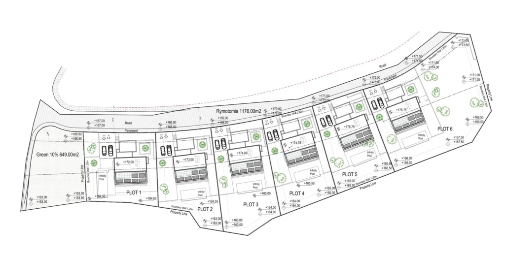 Villa for sale in the area of Pegeia, Paphos. The complex consists of 6 villas. Each residence has an open-plan kitchen and living room and 4 bedrooms. The internal area is 197 m2, the total area is 275 m2. Preparations have been made for the installation of the U/F heating system. The project provides for the installation of an air conditioning system and a photovoltaic system with a capacity of 4 kW. The plot has parking for 2 cars and a 3.5x 10 swimming pool, as well as a barbecue area.The plot is located in a quiet area of the village of Pegeia, on the outskirts of the village. This site, located on a hill surrounded by greenery, offers stunning views of the Coral Bay and the Mediterranean Sea.This place harmoniously combines natural beauty and unsurpassed convenience thanks to major attractions such as the pristine Coral Bay Beach, just a 7-minute drive away, the Paphos Zoo, as well as stunning Sea Caves, which can be reached in 10 minutes, and the picturesque Avakas Gorge Nature Trail, located just 15 minutes from the complex..