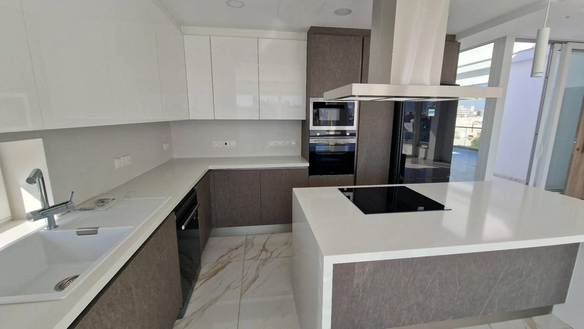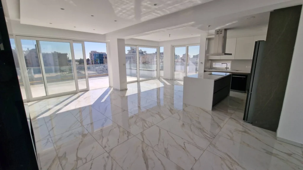 Luxury 3 bedroom penthouse for sale in the area of the Sklavenitis supermarket. The complex has already been built and is ready to move in. The penthouse occupies an area of only the 4th floor. It is equipped with a Smart Home system. First-class finishing materials, equipped kitchen with granite countertops, pressurized water supply system, thermal insulation, built-in concealed air conditioning system, underfloor heating system, energy efficiency class A, video surveillance camera at the main entrance. A photovoltaic system is installed, which reduces energy costs to almost 0. Covered parking + storage room. Excellent location, the city center, as well as the beach and the famous palm Finikoudes promenade are less than a 5-minute drive from the Complex, and the Complex itself is within walking distance of all amenities, including banks, schools, supermarkets, shops, pharmacies, cafes and restaurants.