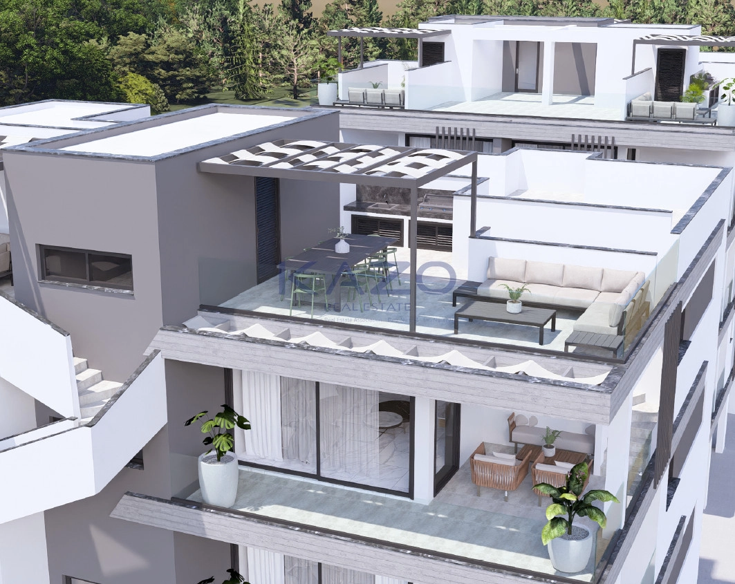 For sale is a spacious off-plan apartment in the popular area of Agia Fyla. Offering an internal space of 107 square meters, this modern home is thoughtfully laid out with three bedrooms and three bathrooms, making it perfect for families or those needing extra room.