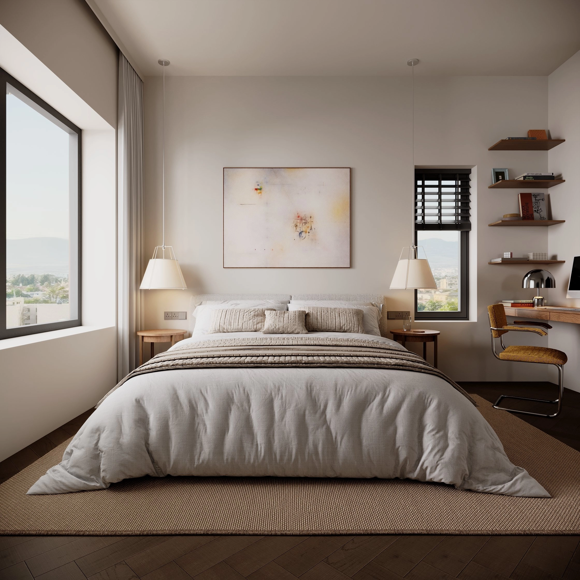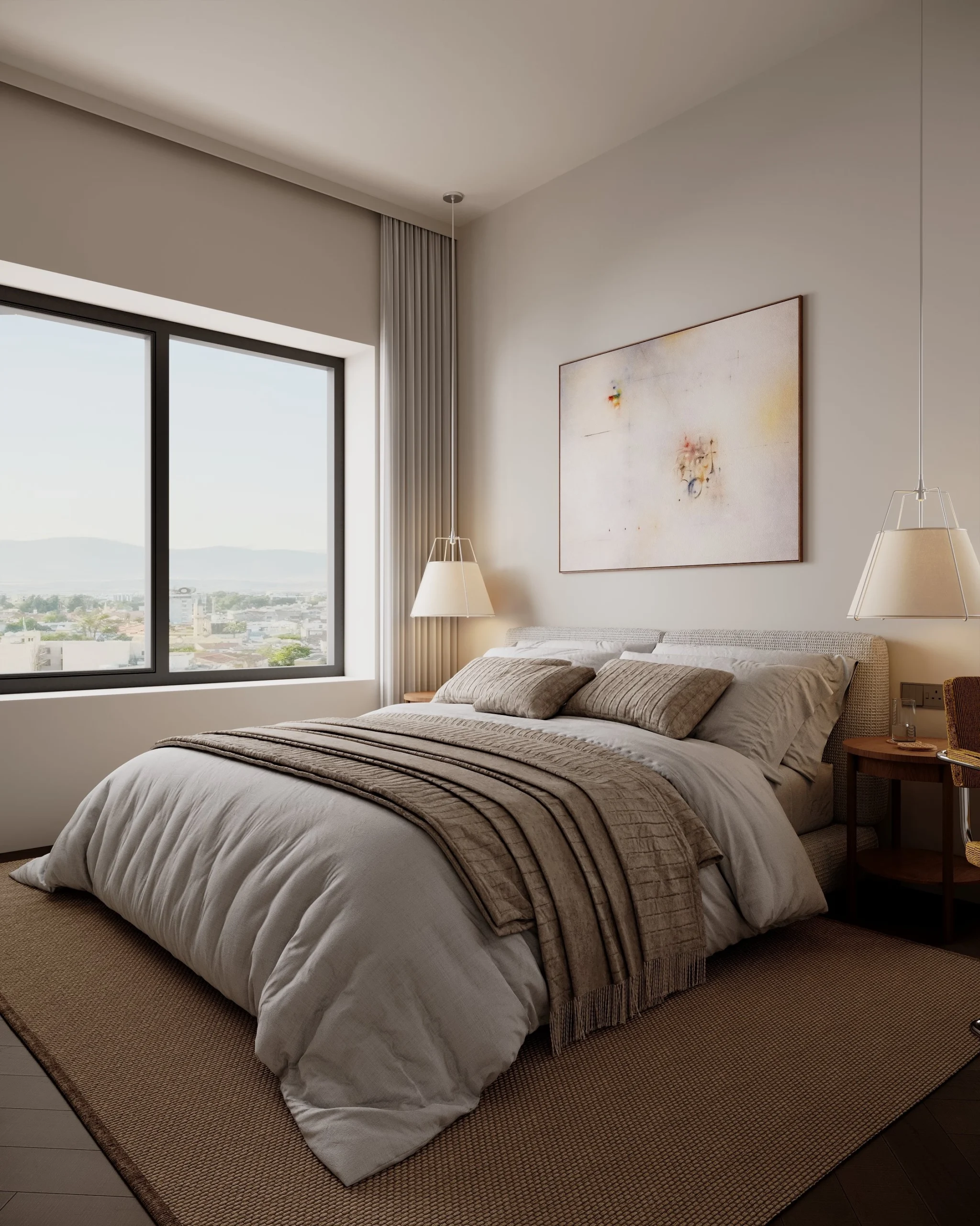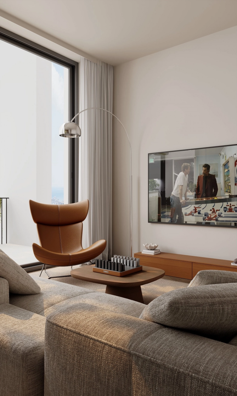 The two-bedroom apartment offers a spacious and thoughtfully designed layout, where the living and private areas are carefully separated to enhance comfort and functionality.