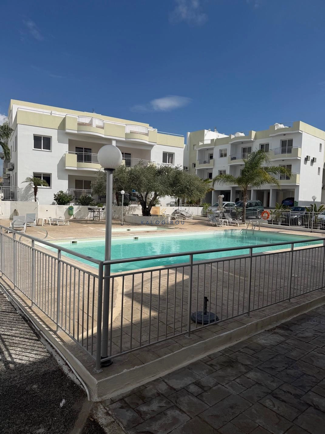 Apartment for sale in Pyla area, Larnaca. The apartment is located in a well maintained complex. It has internal area of 74sq.m, with a covered veranda of 27 sq.m. and uncovered veranda of 44sq.m. It consists of an open plan kitchen, living area, two bedrooms and one main bathroom with wc. Also the apartment enjoys a covered parking space and storage area, gym, swimming pool, sauna and indoor heated pool.