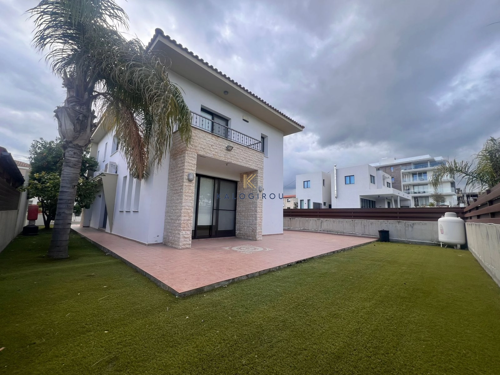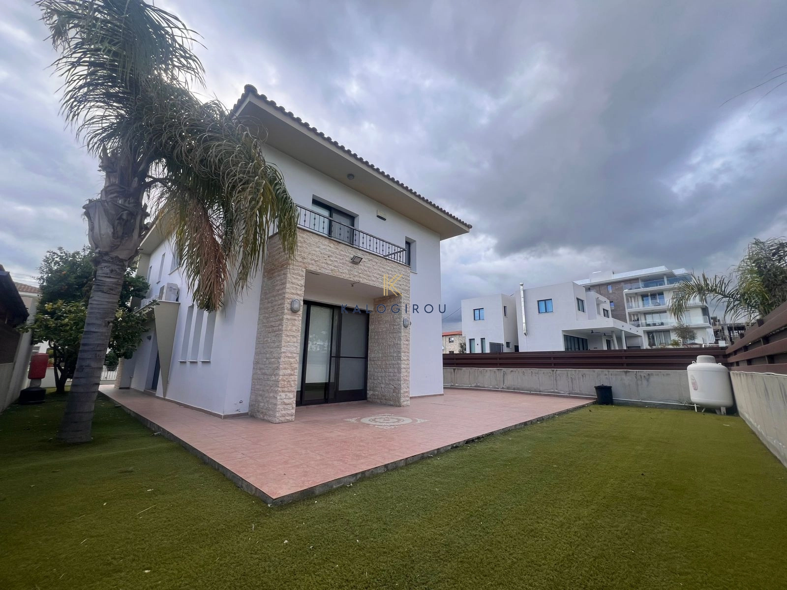 Double Storey House for sale in Larnaca, Mall Area. The house was built in 2010 in a plot of 343 sq.m. The property has internal covered area of 196 sq.m. The ground floor consists of an open plan kitchen with an open lounge and dining space, living room, kitchenette and guest toilet. The first floor consists of 4 bedrooms, the master bedroom is en suite with shower and wc with walking wordrobe and a common bathroom with wc. This home features several extra comforts, including double-glazed windows, central heating, and air conditioning and covered parking.