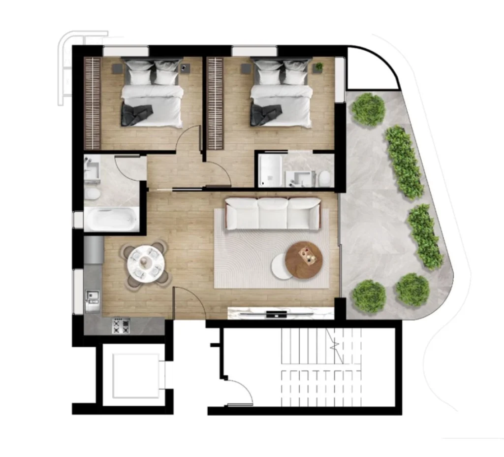 With a strong emphasis on both aesthetics and functionality, the residences feature spacious layouts, balconies and roof gardens ranging from 20 m² to 55 m², with total apartment areas reaching up to 155 m². High-quality finishing materials and contemporary fittings further enhance the sense of comfort and sophistication. Every detail has been carefully considered to support a modern lifestyle of comfort, convenience, and well-being within the complex.