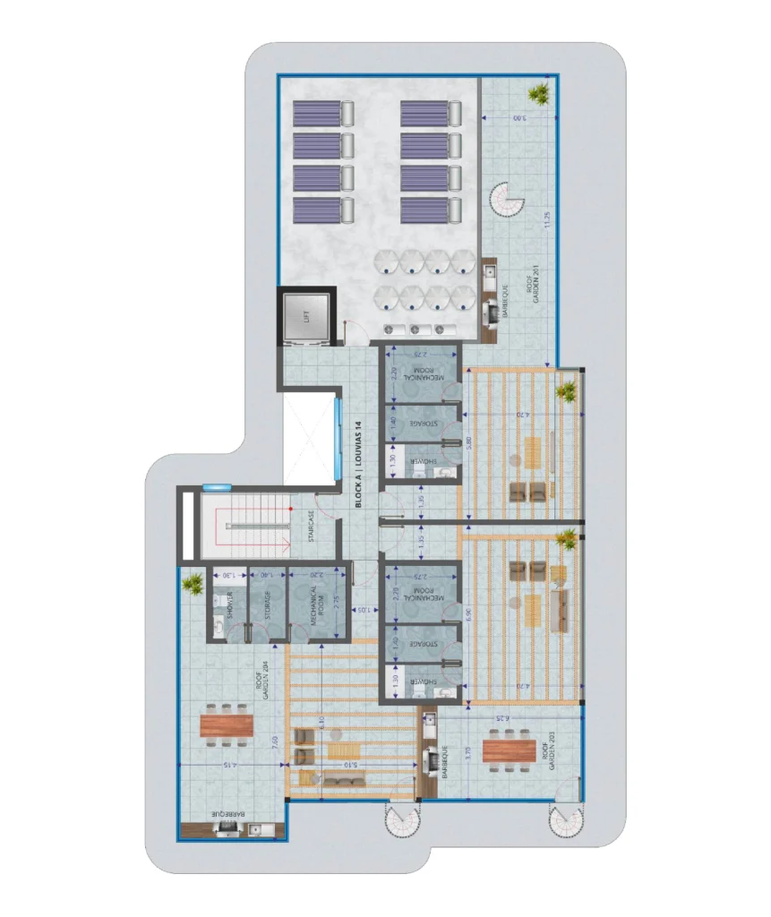 Situated on the top floor, the penthouse provides enhanced privacy, abundant natural light, and generous outdoor spaces. The bright open-plan layout connects the living, dining, and kitchen areas, leading to spacious verandas and a private roof garden, ideal for relaxation, outdoor dining, and entertaining.