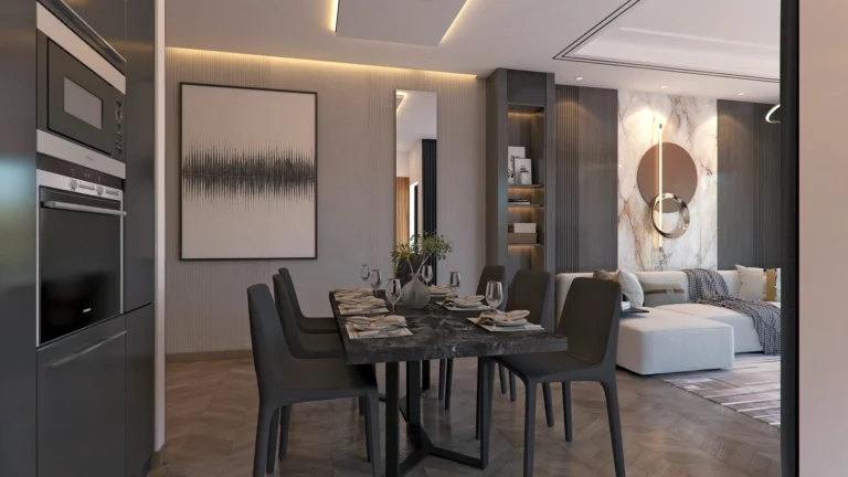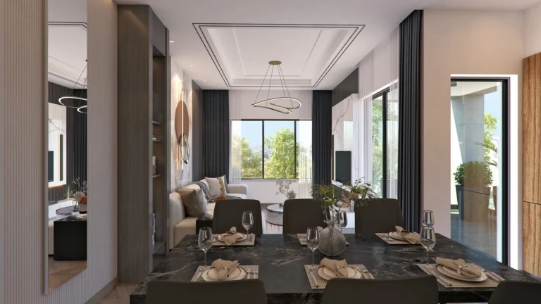 Situated on the top floor, the penthouse provides enhanced privacy, abundant natural light, and generous outdoor spaces. The bright open-plan layout connects the living, dining, and kitchen areas, leading to spacious verandas and a private roof garden, ideal for relaxation, outdoor dining, and entertaining.