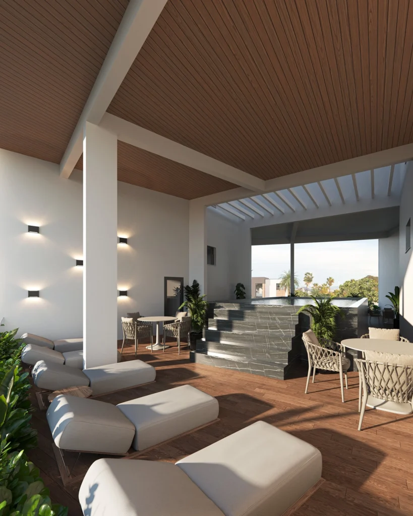 Positioned on the top floor, the penthouse benefits from enhanced privacy, abundant natural light, and expansive outdoor spaces. The bright open-plan layout connects the living, dining, and kitchen areas, while a private roof garden provides the perfect setting for relaxation, outdoor dining, and entertaining.