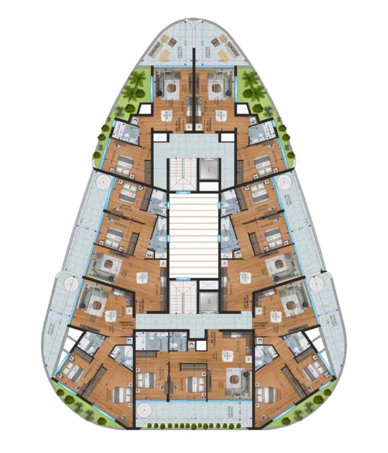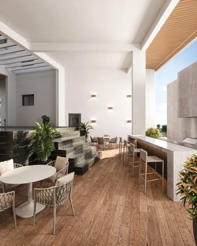 Positioned on the top floor, the penthouse benefits from enhanced privacy, abundant natural light, and expansive outdoor spaces. The bright open-plan layout connects the living, dining, and kitchen areas, while a private roof garden provides the perfect setting for relaxation, outdoor dining, and entertaining.
