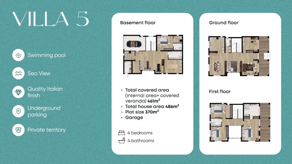 Each residence is designed with meticulous attention to detail, featuring high-end finishes and premium materials such as travertine and marble. With layouts offering 3 to 5 bedrooms and 4 to 8 bathrooms, the homes cater to a variety of lifestyle needs, from intimate family living to spacious entertaining areas. Villa No. 1, the largest and most exclusive residence, offers direct beachfront access and unparalleled luxury.