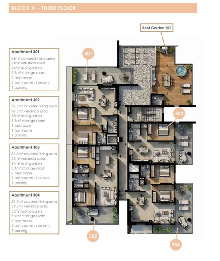 One Bedroom Penthouse Apartment For Sale in Kiti, Larnaca – Title Deeds (New Build Process) Only 1 One bedroom penthouse apartment available !! – 302 A contemporary residential complex designed for modern living combines elegant architecture with comfort and practicality, creating a serene retreat in the heart of Kiti. Residents enjoy premium facilities including a gym, swimming pool, sauna, gym, lounge area and BBQ place. Where style meets tranquility, offering an elevated way of life. Set in the characterful area of Kiti, just outside Larnaca, these residences blends the serenity of open green landscapes with the comfort of refined modern living. The complex consists of two blocks totaling 25 apartments, including 1-bedroom, 2-bedroom, and 3-bedroom units, some of which feature private rooftop terraces with amenities such as a jacuzzi, lounge and BBQ area. Block A - 1 Bedroom with fitted wardrobes - Open plan living – dining – kitchen area - Family bathroom - Shower & W/C on roof terrace - Unfurnished - Optional premium furniture package - Optional electrical appliances package - Provision for air conditioning - Double glazing - Thermal insulation - Secure entry - High speed fiber optic internet - Roof terrace - Communal swimming pool - Outdoor BBQ & lounge area - Communal gym - Communal sauna - Changing rooms - Storage - Covered parking - Internal 58 m2 - Veranda 22 m2 - Roof terrace 58 m2 - Storage 5 m2 - Communal fees TBC - Close to all local amenities - 6 Minutes to the sea & nearest beach - 12 Minutes to the vibrant Mackenzie Beach - 15 Minutes to Larnaca Town Centre - 8 Minutes to Larnaca International Airport - Suitable for Cyprus Permanent Residency - Subject to VAT - Energy Efficiency A Kiti Kiti is found about 11 kilometers south-west of Larnaca. Villagers grow Vegetables, cereals, and a few fruit-trees are cultivated in the region. The small distance between Kiti and Larnaca, the good road connection and its remarkable development in agriculture contributed to its rapid population growth. The main village square which was recently revamped during a three-year project, has cafes, restaurants and a Museum of Culture. The unique church of “Panagia Aggeloktisti” houses a very rare 6th century mosaic of the Virgin and Child between two archangels, and is under the protection of UNESCO. The proposed marina will be in the Softades beach area which is also the island’s first and only designated beach for wind and kite surfing, and offers some of the best sea and wind conditions in the whole of the Mediterranean region. There are kite surfing schools/clubs located there if you fancy giving it a try. ———— * Title Deeds (New Build Process) * Penthouse with Roof Terrace * Communal Swimming Pool, Gym & Sauna * Suitable for Cyprus Permanent Residency * Subject to VAT * Off Plan – Completion TBC * Energy Efficiency A Kiti Kiti County: Larnaca Sale Type: For Sale Ref #: KHX016N1P/BlockA/302