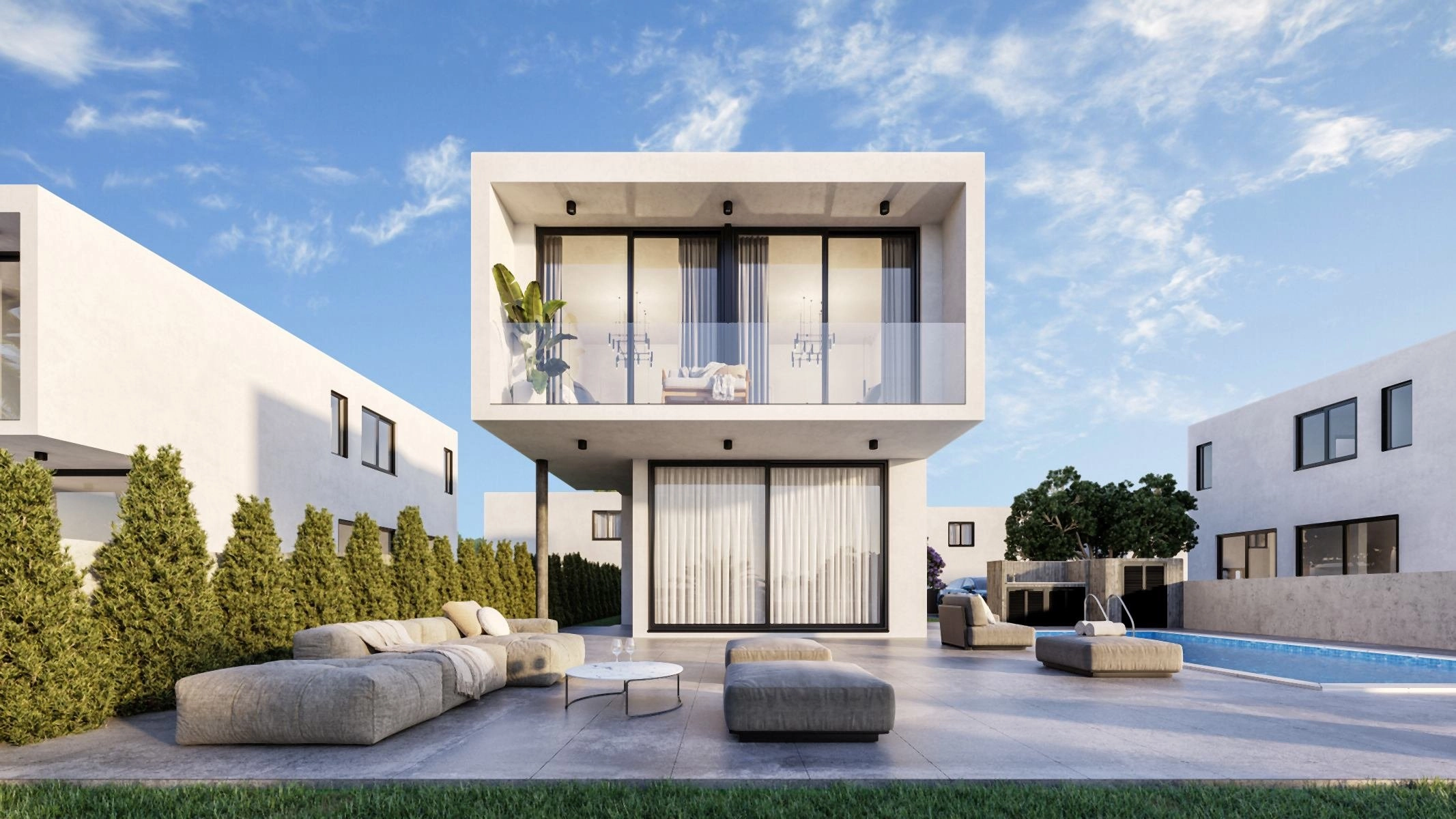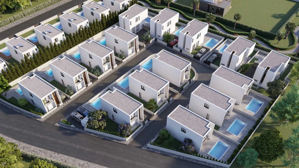 Each villa is designed with clarity and refinement, featuring three spacious bedrooms and well-appointed bathrooms, all finished with refined materials and a focus on comfort. Large plots provide room for personal landscaping, while a private pool completes the outdoor experience, turning the exterior into a welcoming extension of the home.