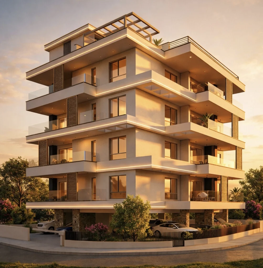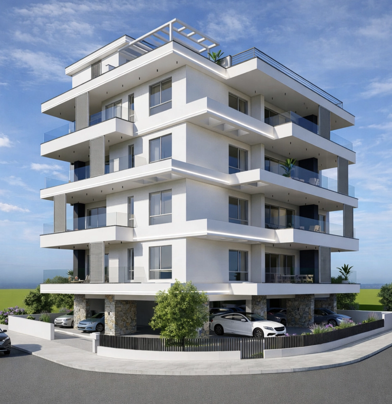 Large sliding doors lead to a generous covered balcony of approximately 22 m², extending the living area outdoors and providing the perfect space for relaxation or outdoor dining. Selected apartments also benefit from an additional uncovered balcony, adding further flexibility.