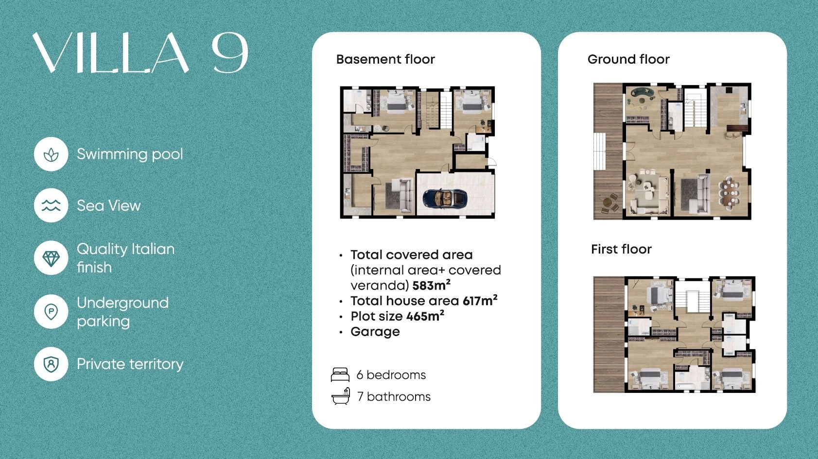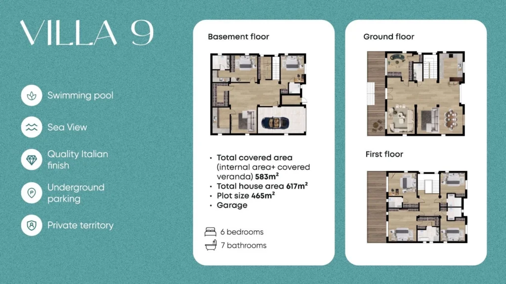 Each residence is designed with meticulous attention to detail, featuring high-end finishes and premium materials such as travertine and marble. With layouts offering 3 to 5 bedrooms and 4 to 8 bathrooms, the homes cater to a variety of lifestyle needs, from intimate family living to spacious entertaining areas. Villa No. 1, the largest and most exclusive residence, offers direct beachfront access and unparalleled luxury.