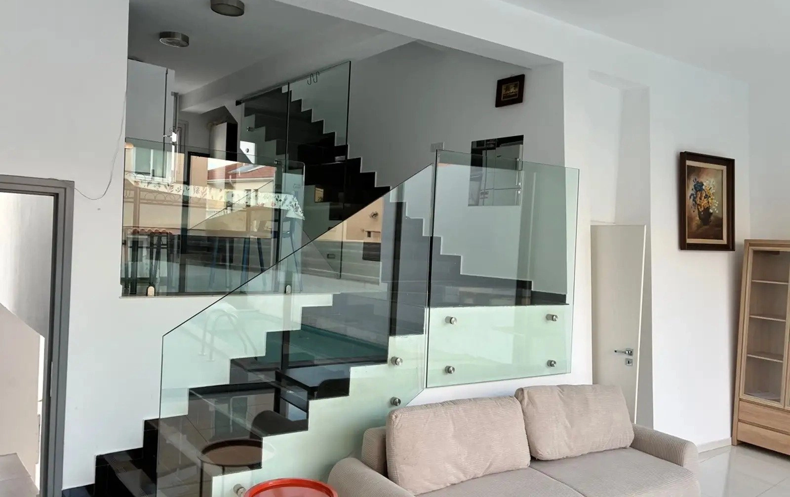 Semi-detached house with high-ceiling living room, 3 bedrooms, and wonderful sea views. Located just 50 meters from the beach. Features include a private pool, garden, roof garden, covered parking, and storage room. Fully furnished with full air conditioning in all rooms. Title deeds available.