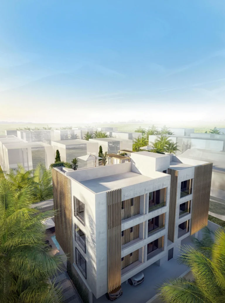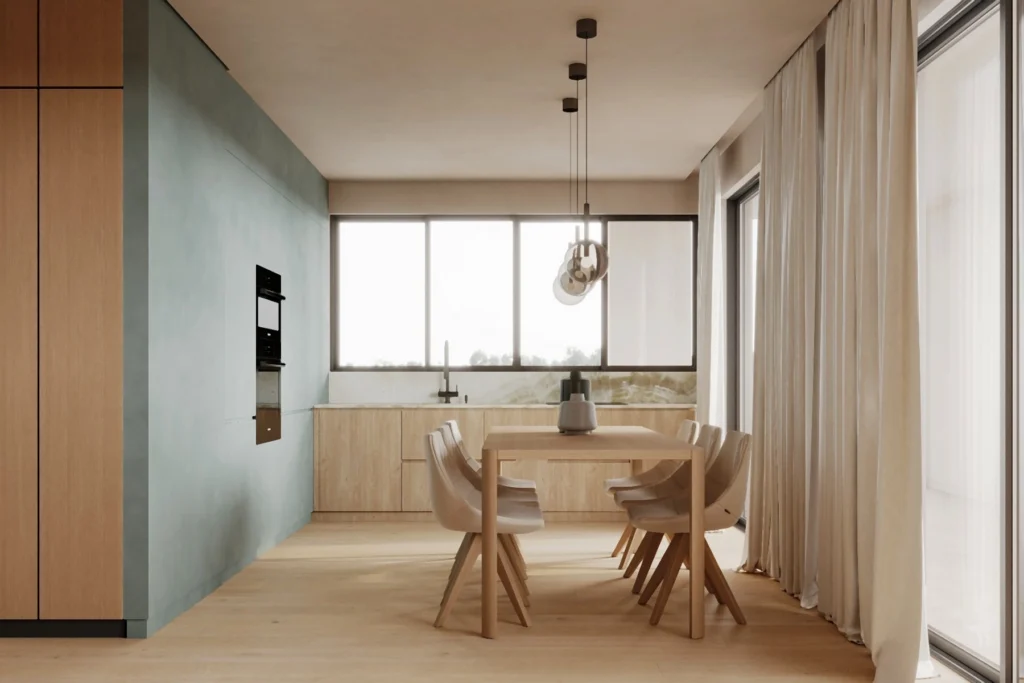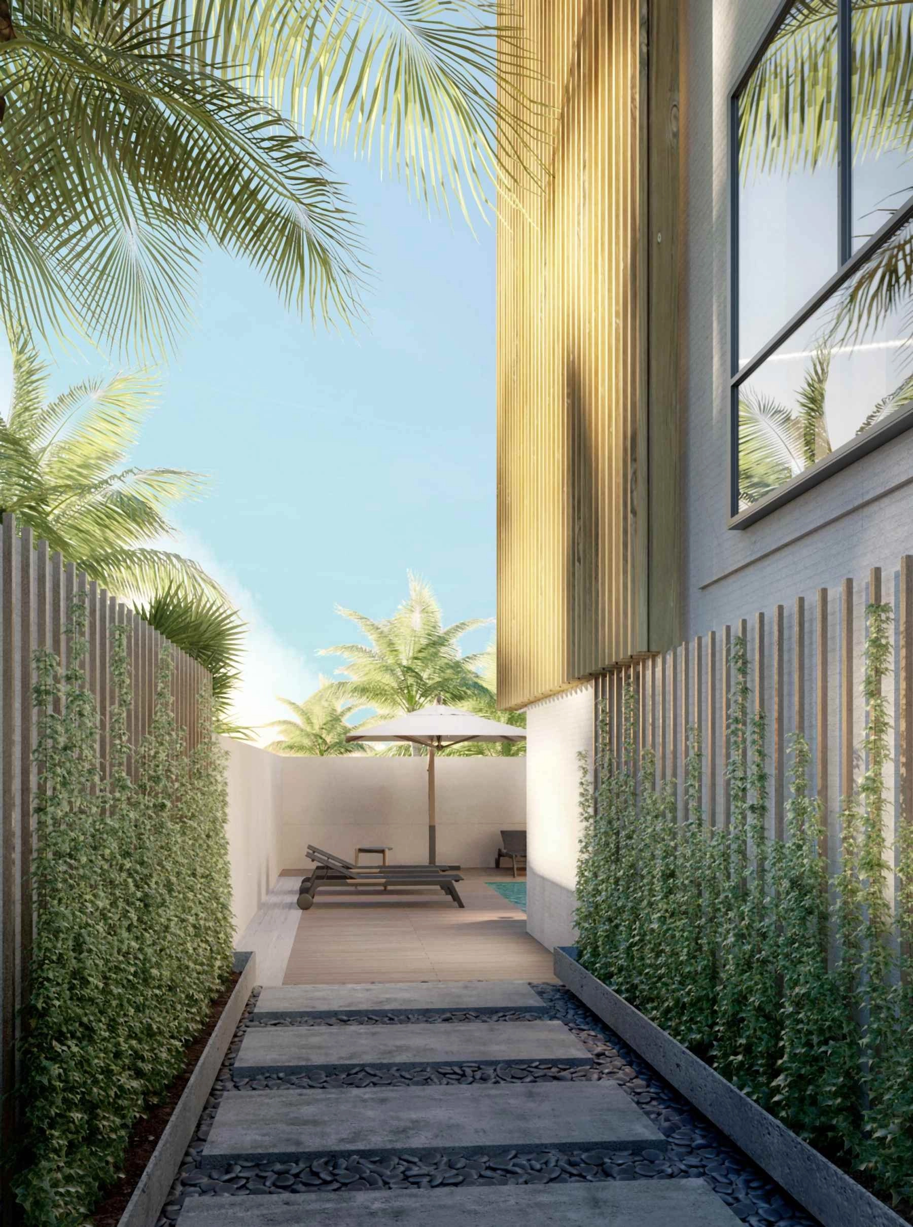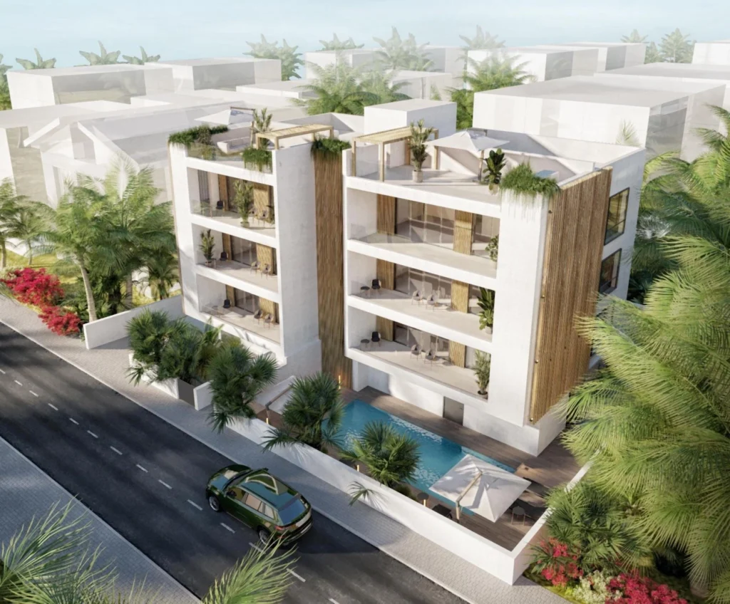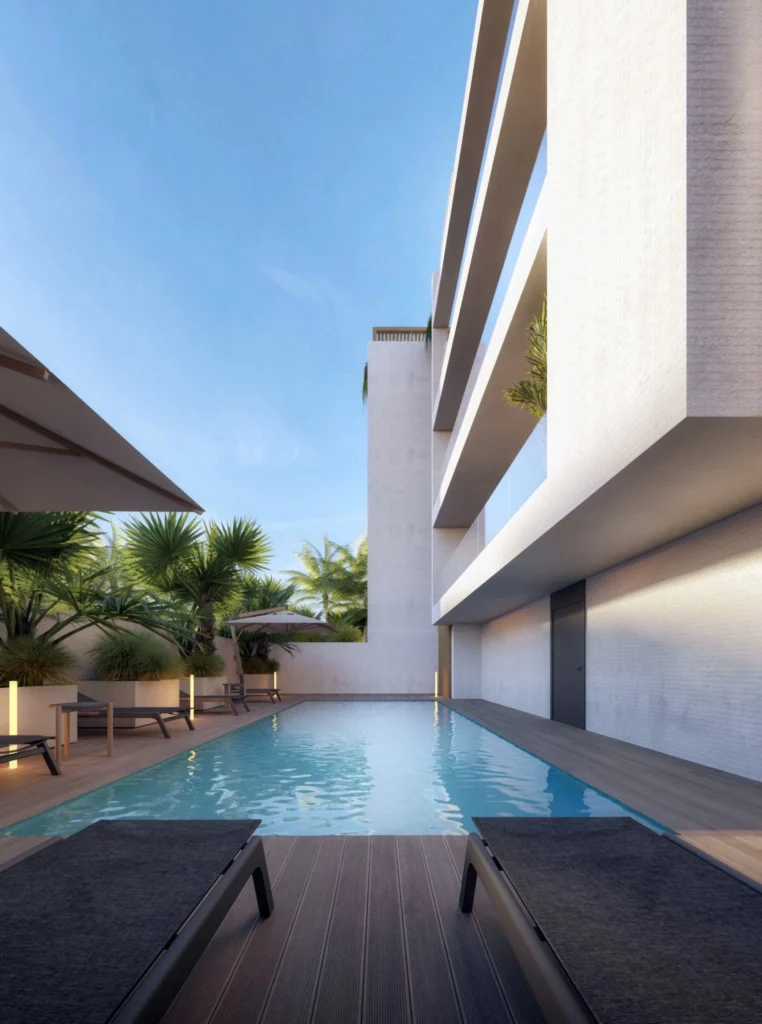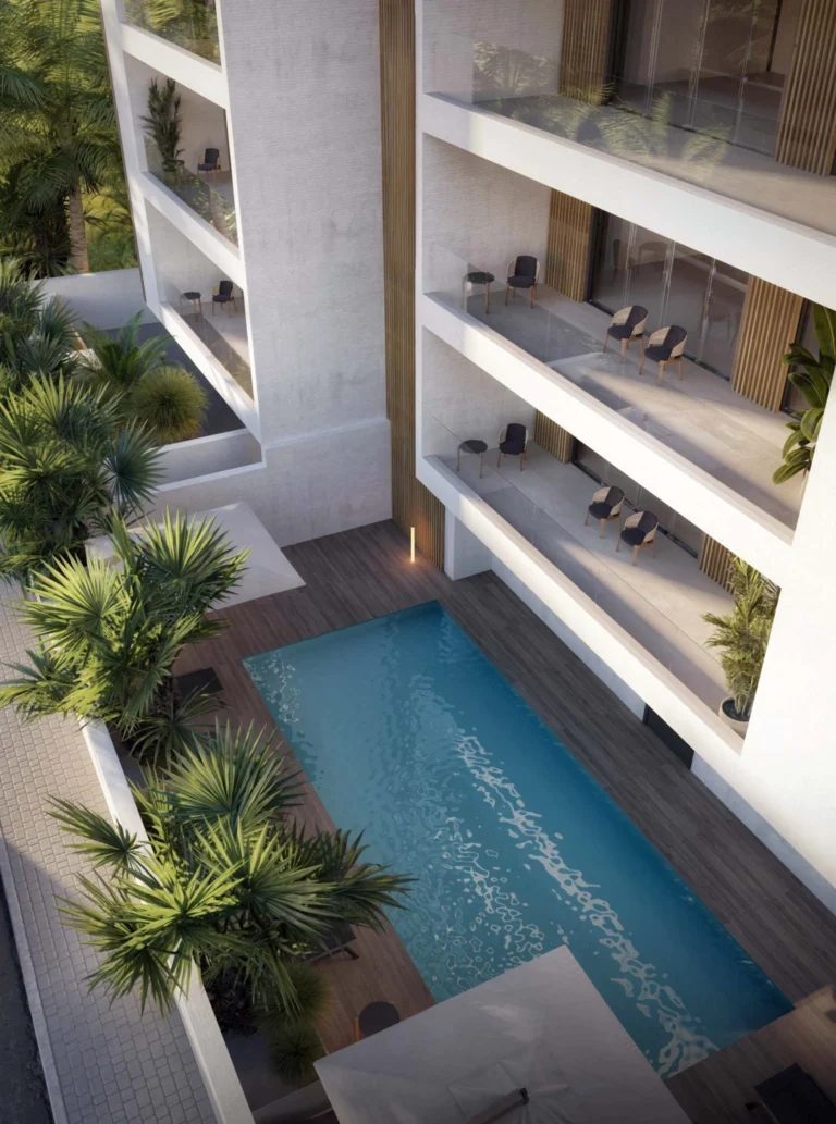 The project is designed as a private and thoughtfully composed residential environment, with only two apartments per floor, landscaped green areas, a swimming pool, and a sense of privacy that remains connected to a sociable way of living. Selected residences also benefit from sea views, while the rooftop is designed as an elevated outdoor space with a dedicated BBQ area.