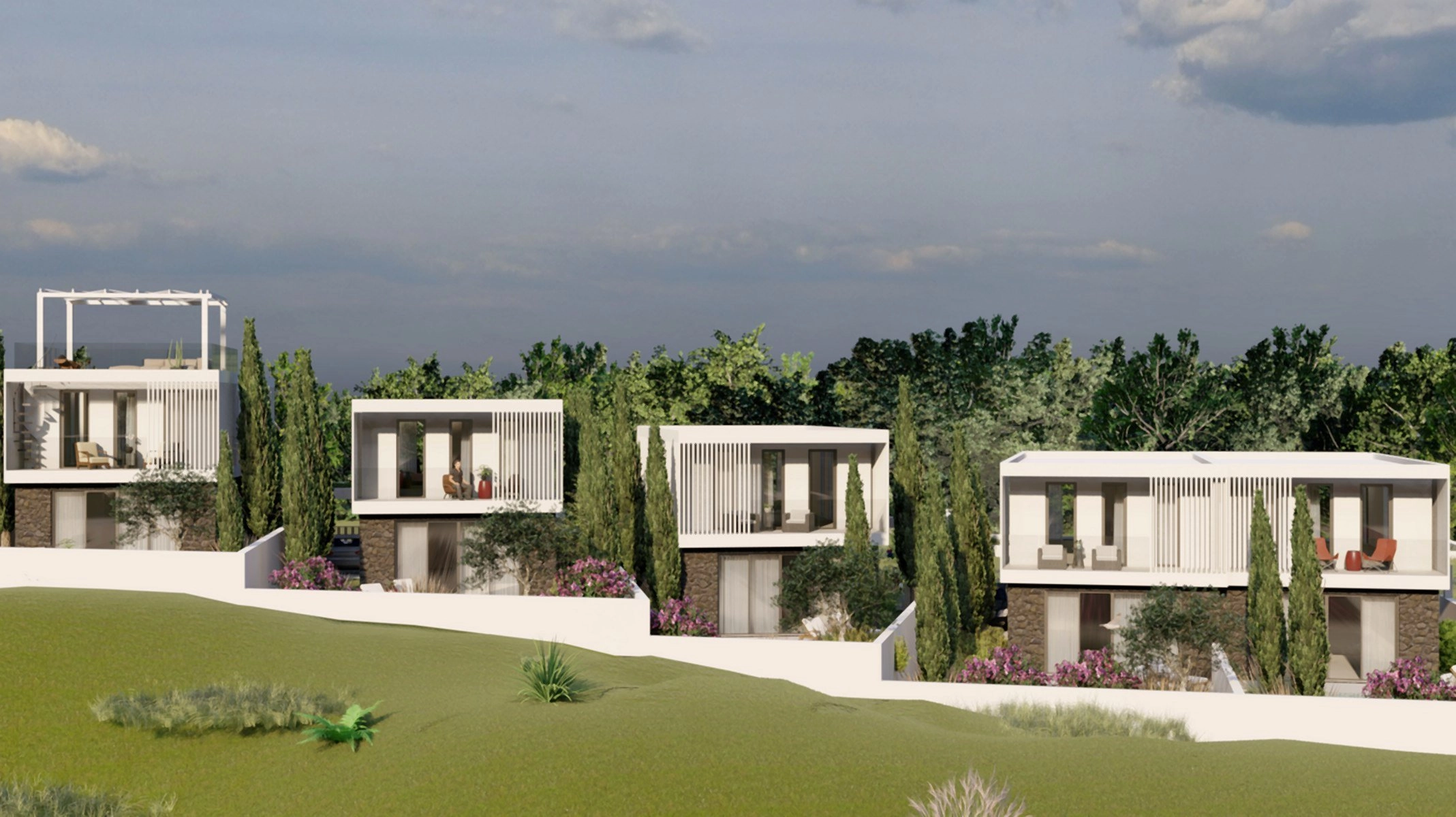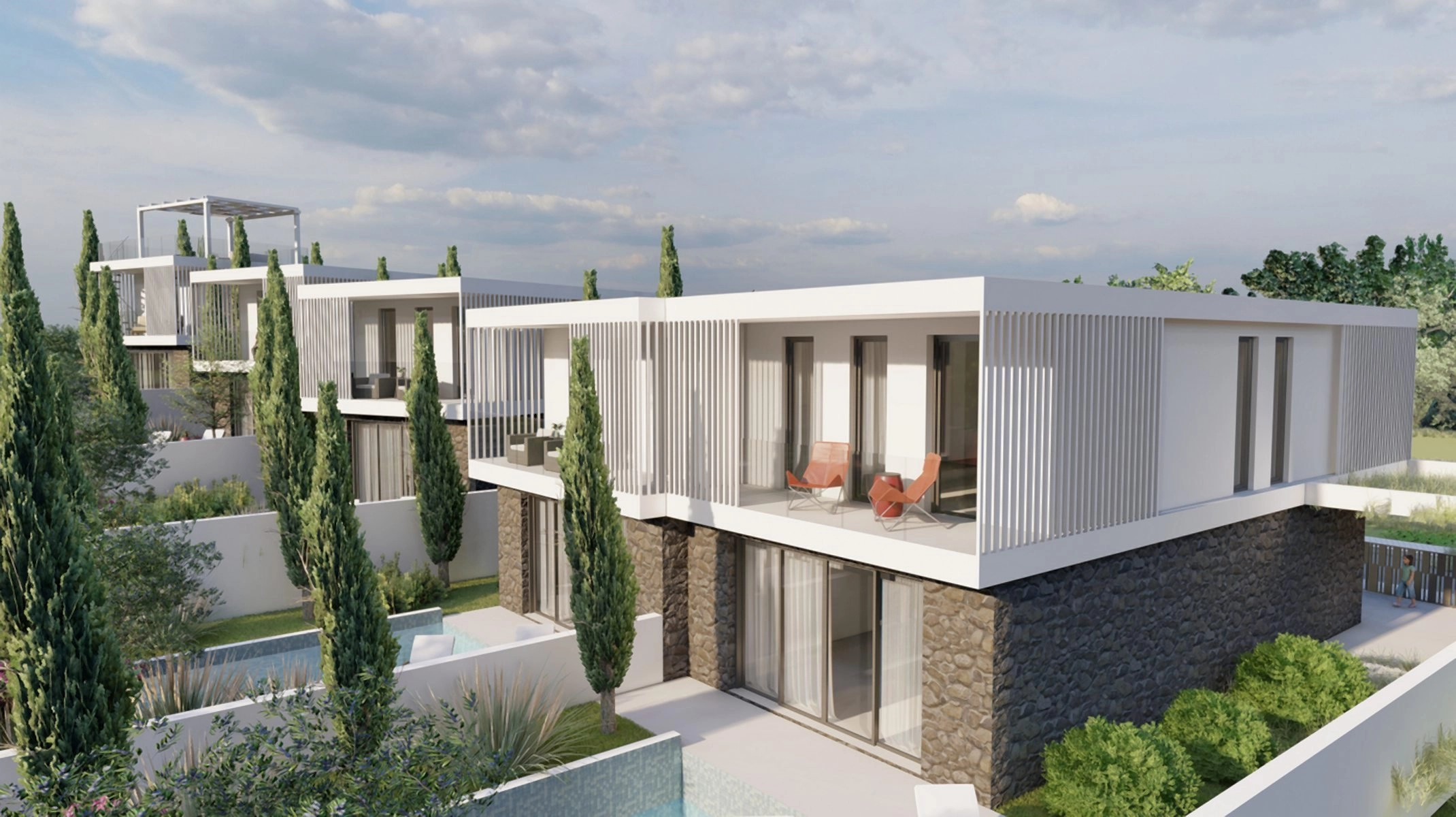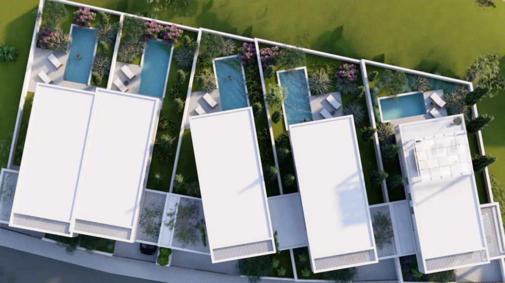 The project is designed as a private and thoughtfully composed residential environment, with only two apartments per floor, landscaped green areas, a swimming pool, and a sense of privacy that remains connected to a sociable way of living. Selected residences also benefit from sea views, while the rooftop is designed as an elevated outdoor space with a dedicated BBQ area.