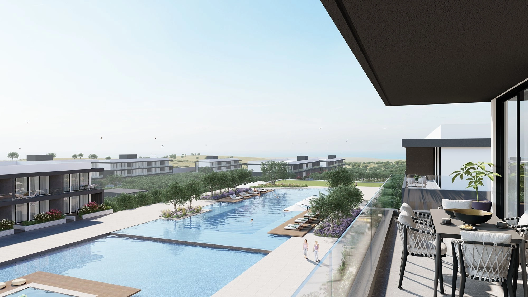 Residents benefit from a range of lifestyle amenities, including communal swimming pools, a fully equipped gym, padel courts, landscaped gardens, and children’s play areas.