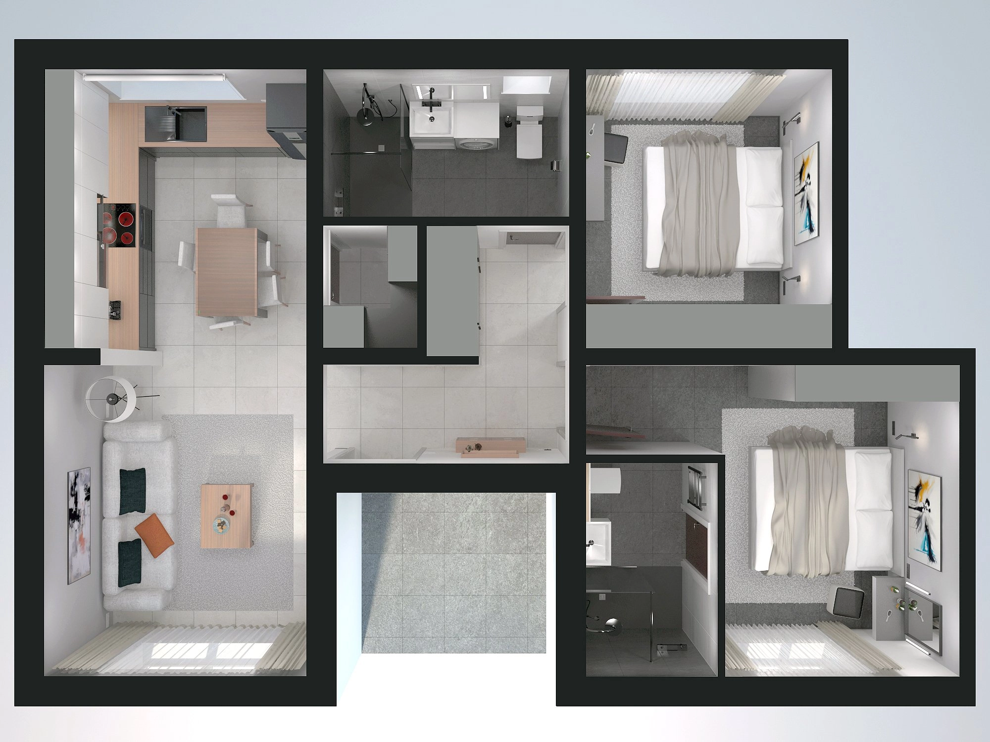 Each apartment is individually designed, moving away from standard layouts to ensure functionality and comfort without compromise. The use of high-quality ecological materials and advanced thermal insulation contributes to a healthy indoor environment and long-term energy efficiency.