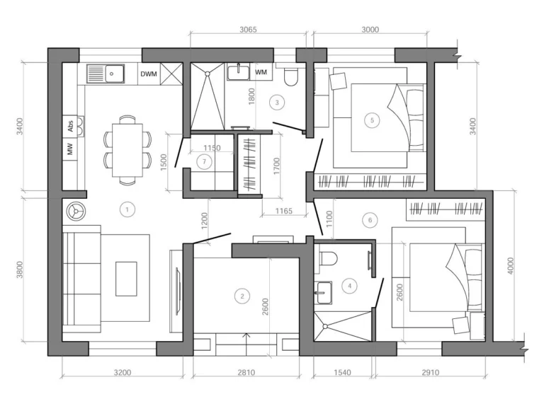 Built using innovative construction technologies, the project focuses on comfort, durability, and sustainability. Advanced systems are implemented to reduce indoor humidity, prevent mold, enhance sound insulation, and improve overall living conditions. The residences feature high ceilings (3 meters), wide windows for abundant natural light, and walk-in wardrobes in all units, including one-bedroom apartments.
