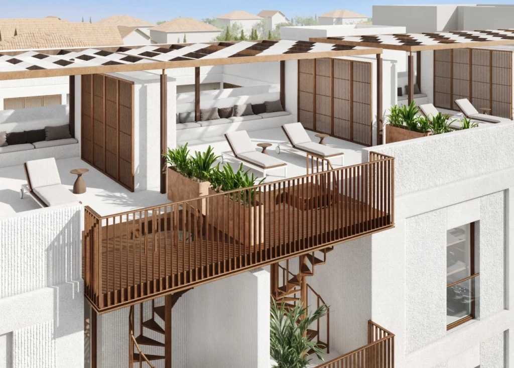 The development comprises 27 apartments with 1, 2, and 3 bedrooms, including a selection of units with private gardens, rooftop terraces, and sea views, creating a diverse and well-balanced residential offering.