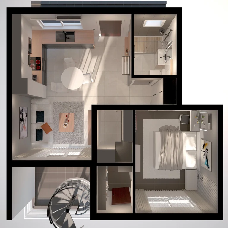 Each apartment is individually designed, moving away from standard layouts to ensure functionality and comfort without compromise. The use of high-quality ecological materials and advanced thermal insulation contributes to a healthy indoor environment and long-term energy efficiency.