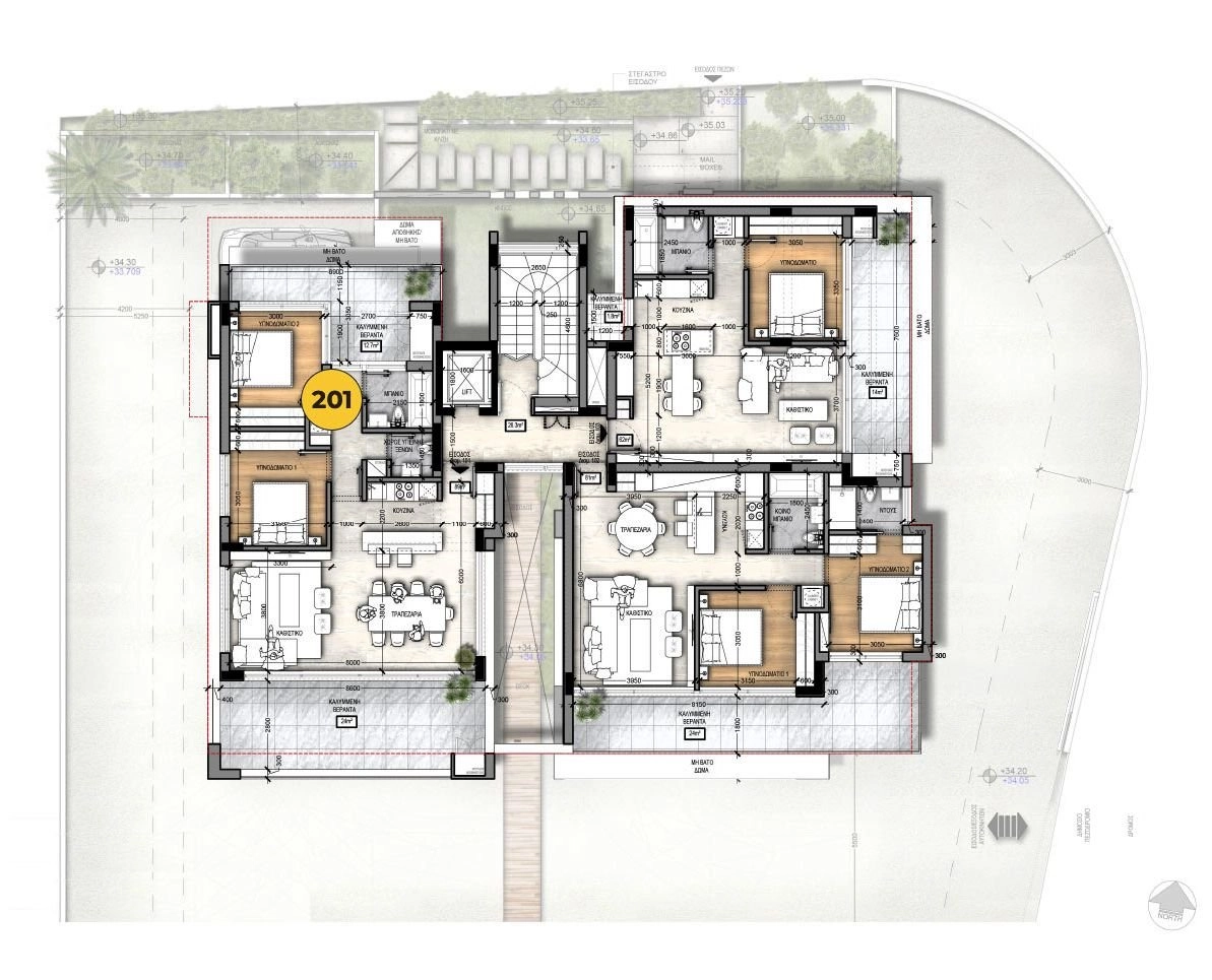 These modern and well-designed 2-bedroom apartments on the first floor offer a total area of 125 m², including 35 m² of covered verandas. The layout includes 1 bathroom and a guest toilet, combining comfort and functionality.