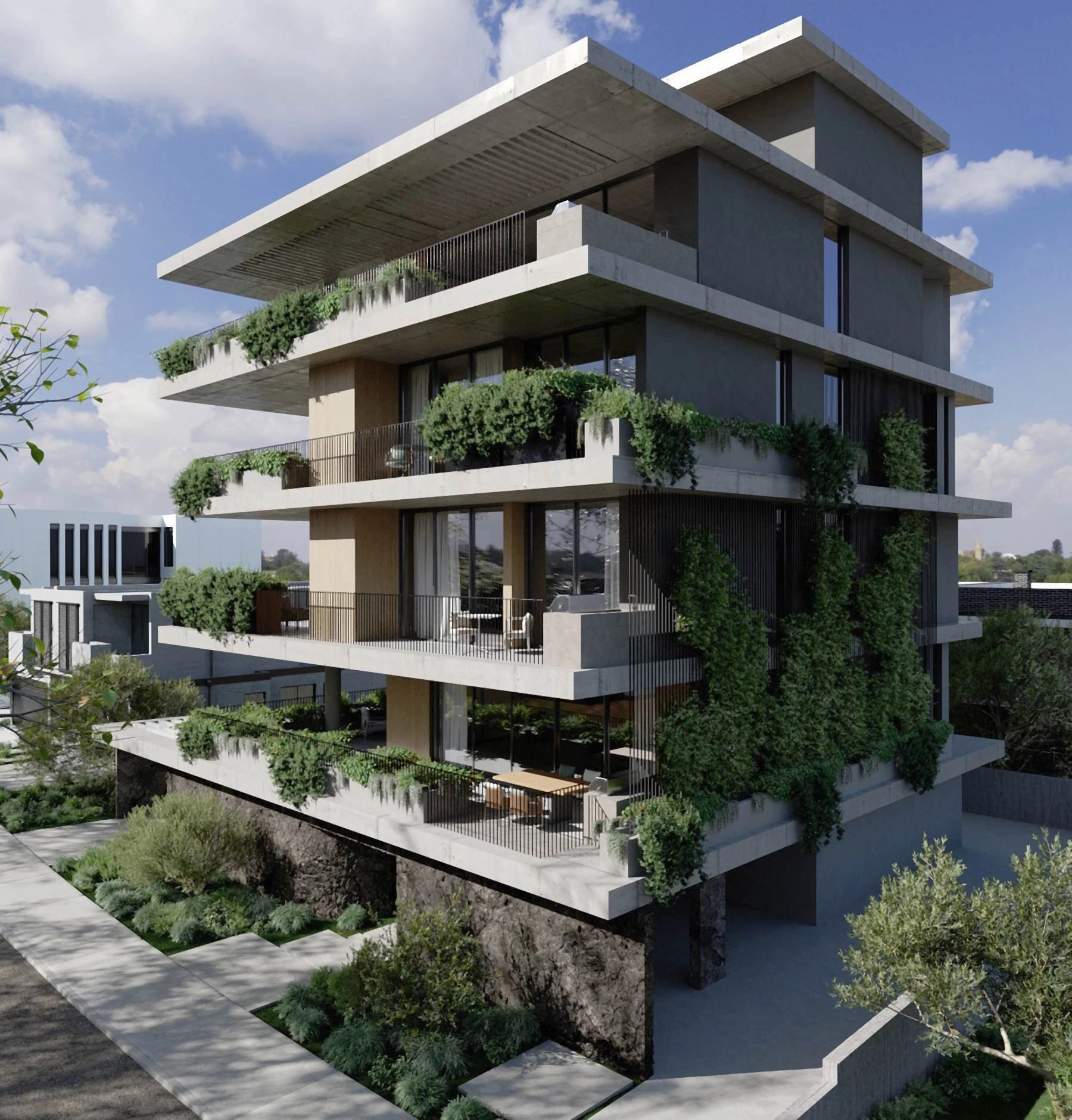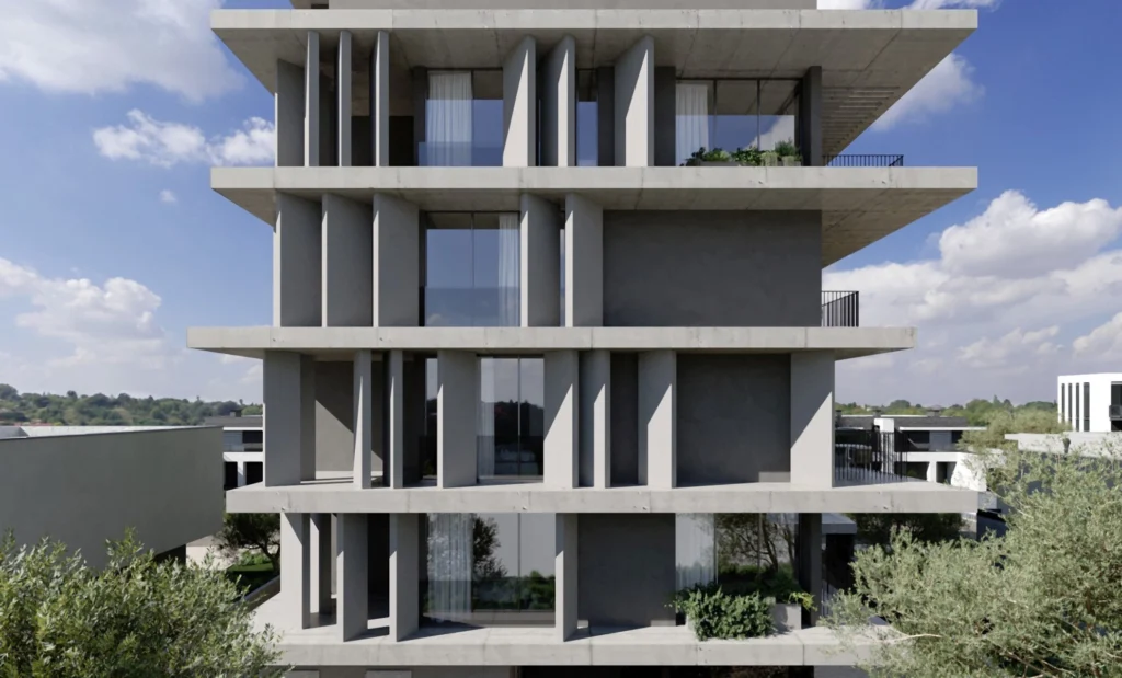 Defined by clean architectural lines and a strong connection to natural textures, this contemporary residential development introduces a refined concept of modern living in Paphos. The building is designed across multiple levels, offering a limited collection of thoughtfully planned apartments with one, two, and three bedrooms, each combining functionality with a sense of openness and light .