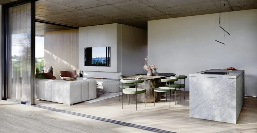 The architectural approach is complemented by carefully considered layouts that prioritise natural light, privacy, and everyday practicality, while maintaining a cohesive and modern aesthetic throughout.