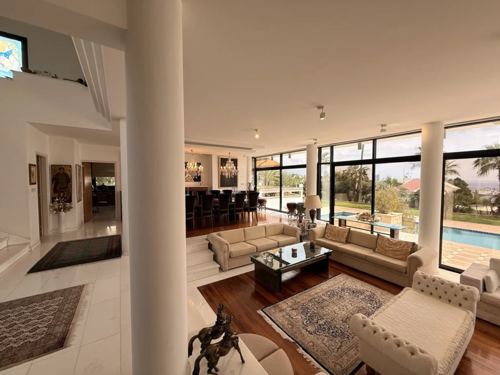 Set in the prestigious area of Germasogeia, this exceptional villa offers a rare opportunity to own a property on an expansive 3,215 sqm plot, combining privacy, space, and stunning sea views.