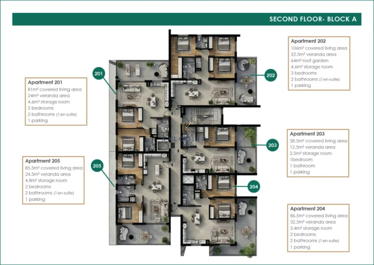 Third floor apartment for sale in Kiti area, Larnaca. With spacious living areas, this flat consists of an open plan kitchen-living-dining area, 2 bedrooms-one of them en suite, main bathroom and covered veranda. Furthermore, the apartment enjoys private roof garden with open kitchenette and wc. Covered parking space and storage room also available.