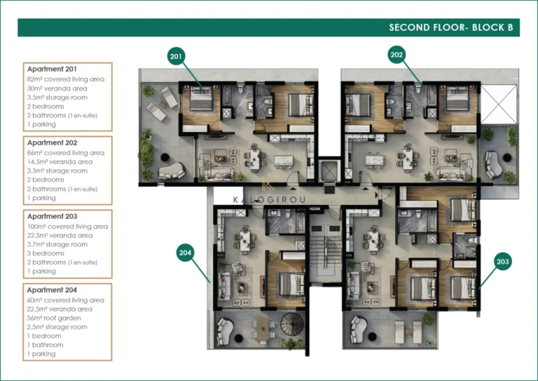 Apartment situated on the first floor for sale in Kiti area, Larnaca. It consists of an open plan kitchen-living-dining area, 1 bedroom, bathroom and big covered veranda. Additionally, the apartment has allocated covered parking and storage room.