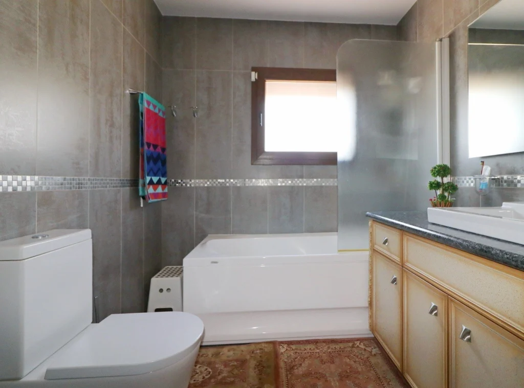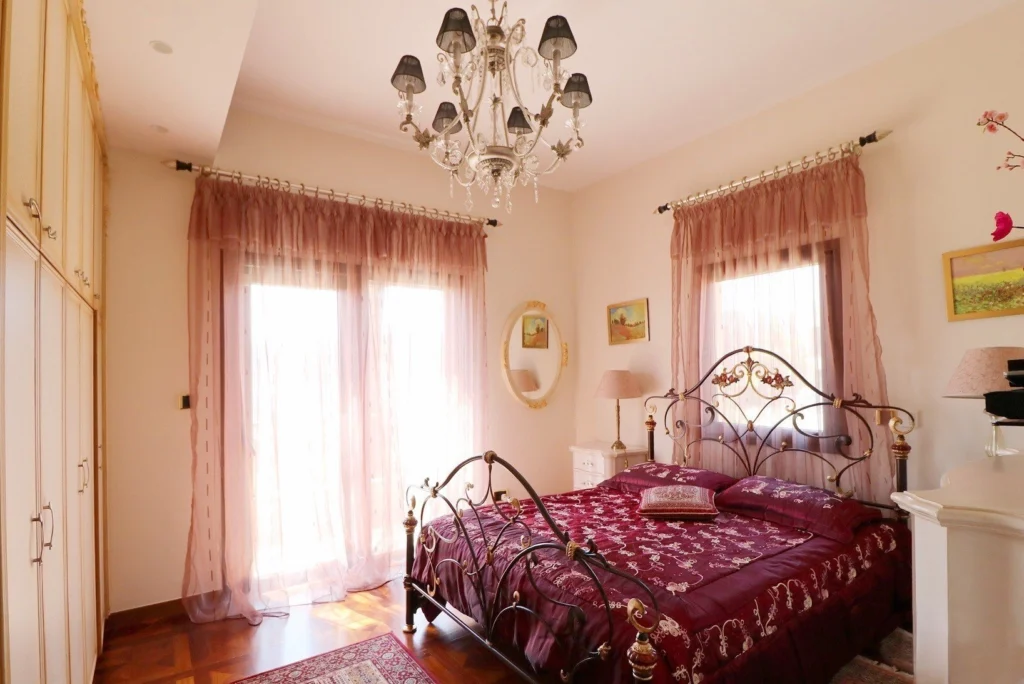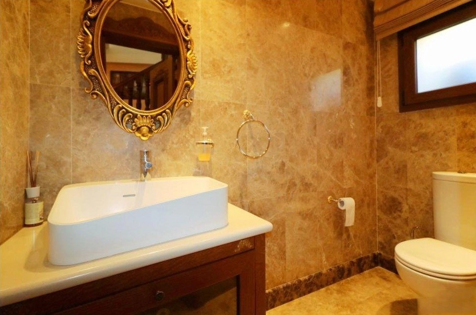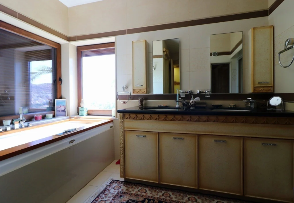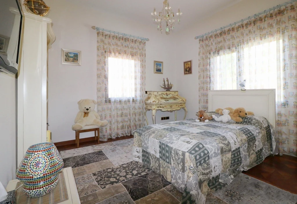 Finished to the highest standards, the villa showcases Venetian plaster, marble flooring, hardwood details, and Italian decorative elements, while the exterior combines graffiato and natural stone. The property is equipped with underfloor heating (diesel), HRV air conditioning, UPVC windows, and electric shutters.