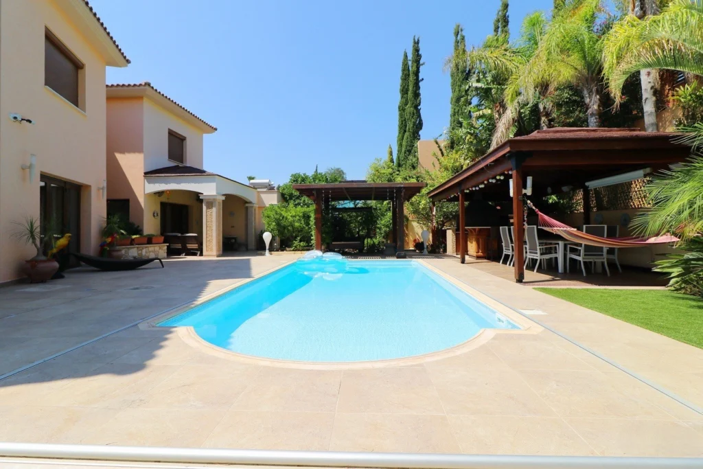 This exceptional 5-bedroom villa in Mouttagiaka, Limassol is offered for sale, located in the prestigious Kalogiroi – Mesovounia hills, one of the most elite residential areas of the city. The property enjoys breathtaking panoramic views of Limassol, the Mediterranean Sea, and the surrounding mountains, offering privacy, security, and a truly luxurious lifestyle.