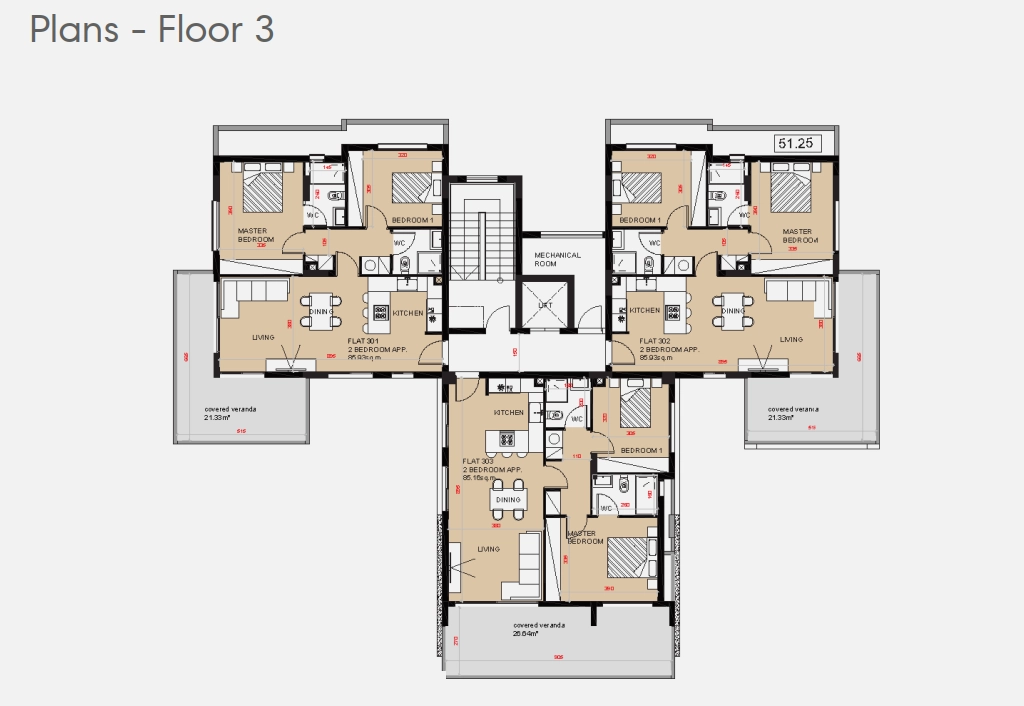 The apartment is thoughtfully designed with a functional layout, well-proportioned interiors, and large windows that allow plenty of natural light throughout the space. Covered verandas provide additional outdoor living areas, perfect for relaxation.
