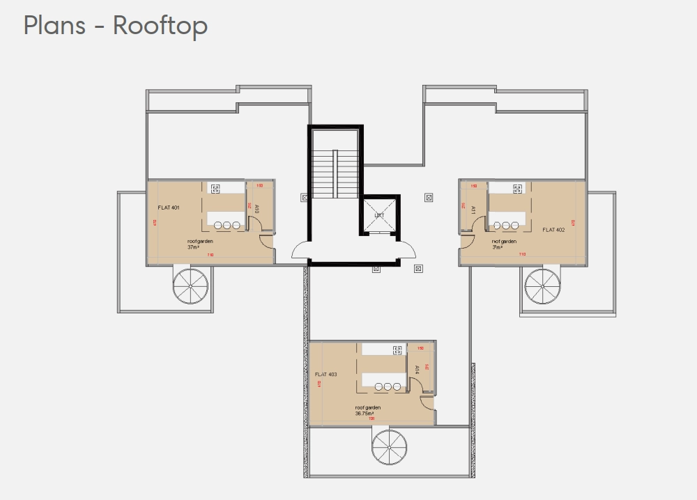 A private roof garden adds an exclusive lifestyle element, offering open views and a perfect setting for relaxation or entertaining.