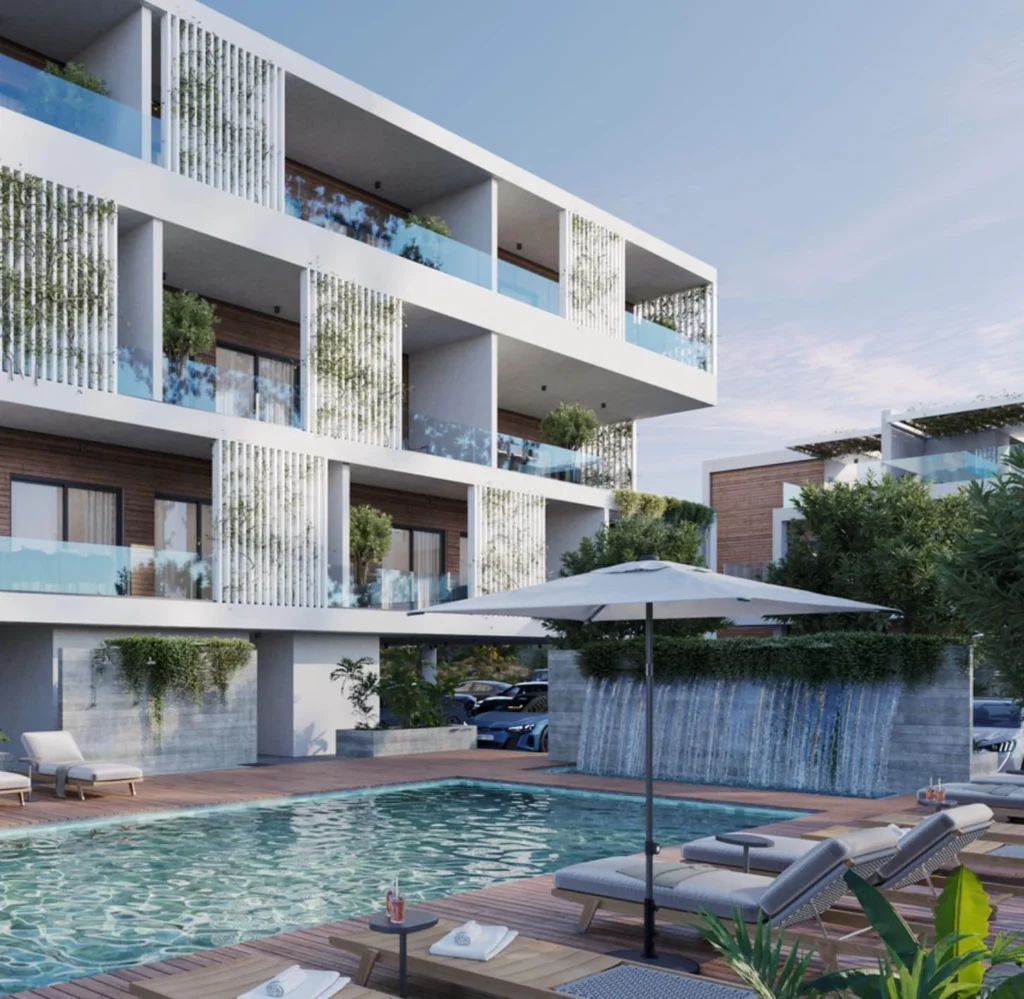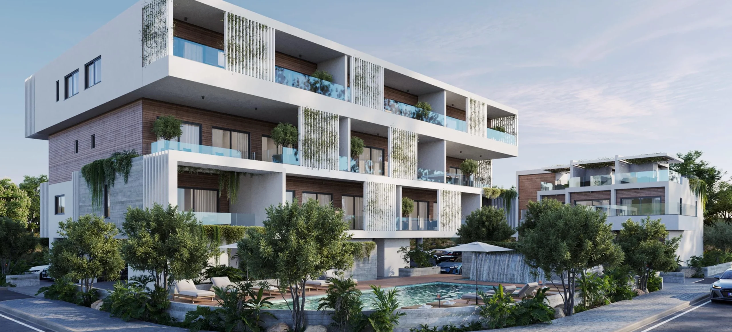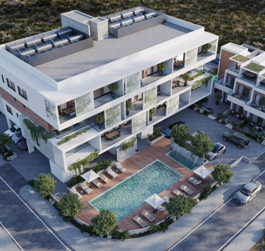 Two bedroom apartment for sale in Paphos, next to the famous Tombs of the Kings and just a few minutes walk from the sea. Discover the epitome of modern comfort and Mediterranean lifestyle. The apartment is ideal for private living. It has a well-thought-out layout, high-quality finishes and stunning panoramic views of the sea and the nature reserve. Nothing can be built in front of the house, which guarantees an eternal view of the sea and nature. The complex gives an atmosphere of resort life every day — here you can enjoy the tranquility by the communal pool, relax in the sun and feel harmony with the surrounding nature.