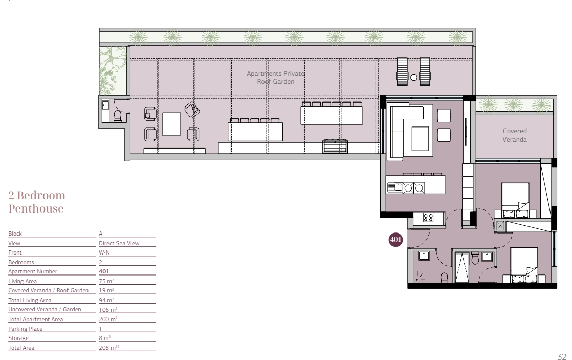2 bedroom penthouse with 106 m2 roof garden in a new complex located on a green hillside in a quiet area of Germasogeia, Limassol. One of the key features of Germasogeia is its proximity to the beaches of Limassol, as well as accessibility to various amenities such as restaurants, cafes, shops, supermarkets, schools. The complex is an architectural work designed by leading design studios and interiors embodying a cosmopolitan lifestyle. Apartments with one, two and three bedrooms blend harmoniously with the surrounding nature and offer stunning views of the city and the sea. The building has a secure gated entrance, covered parking spaces, a clean swimming pool, a terrace, two high-speed elevators, individual storage rooms and landscaped gardens. Penthouses are located on the upper floors of the building.